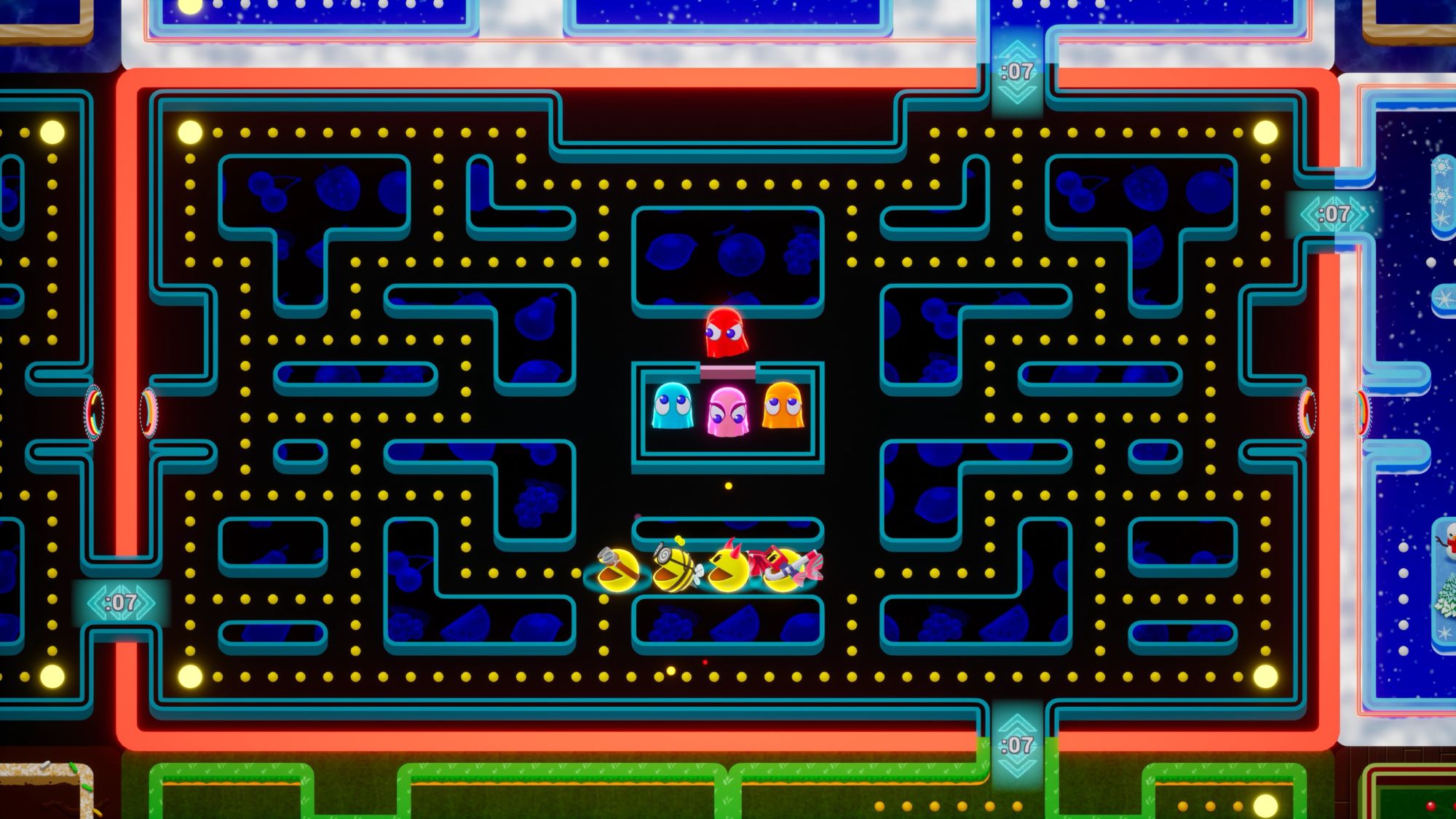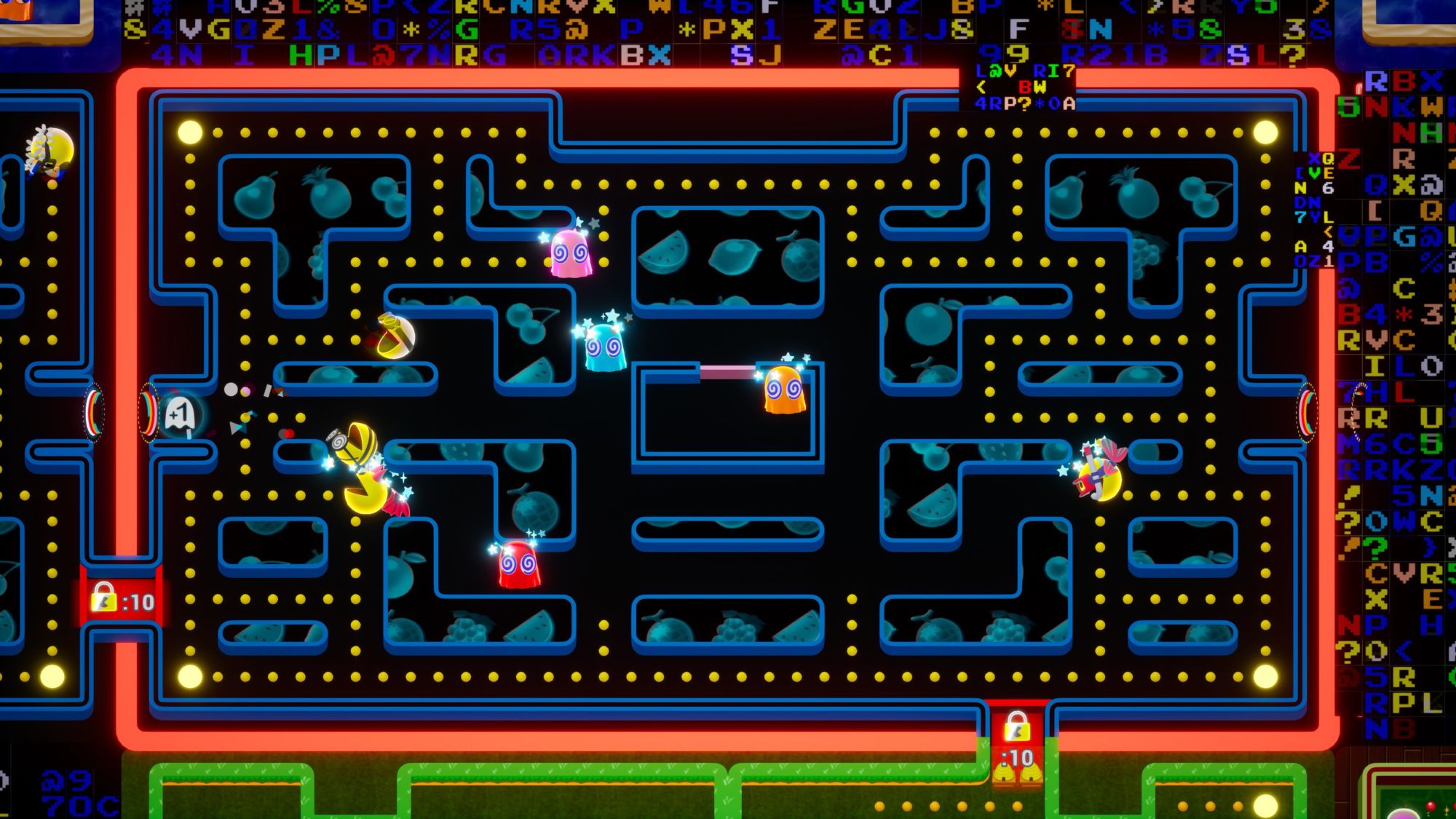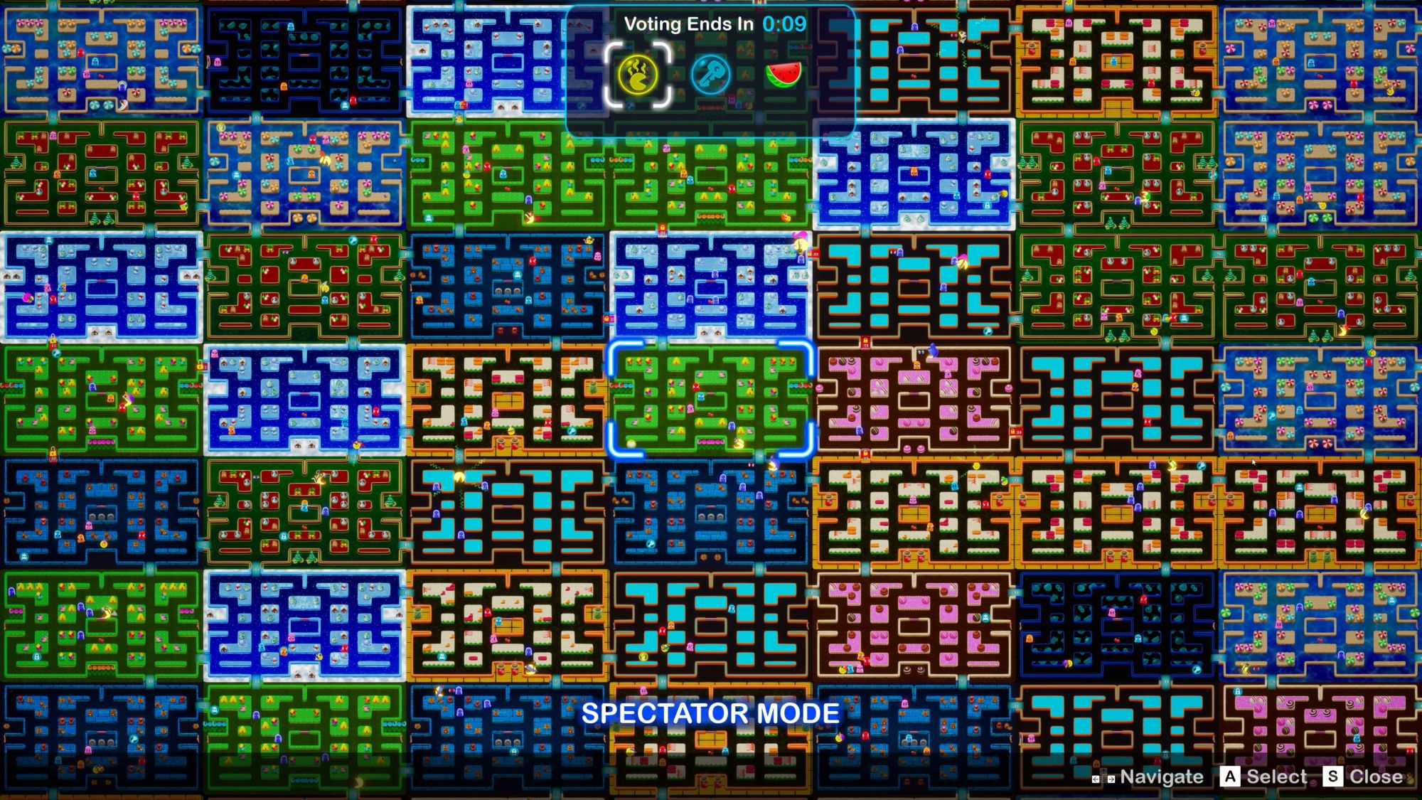 Prove your mettle in the world's biggest multiplayer Pac-Man experience! Play in 64-player matches and show everyone who's the leader of the Pac! Invade other players' mazes, eat their dots and power ups – even other players! – and dominate the ranks! But watch out: viewers can vote on power-ups that can cause you – or your opponents! – to stumble on the field and be eliminated from battle!