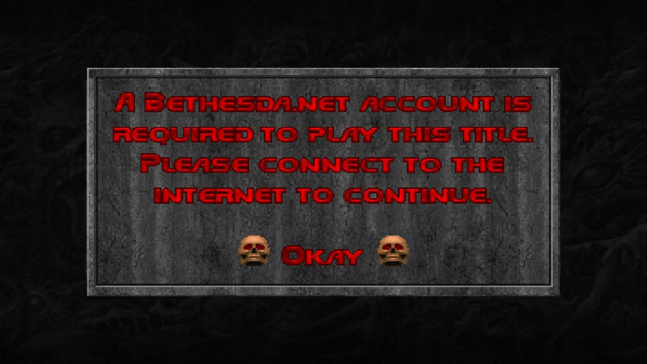 Bethesda Softworks will be sending out a patch for their latest DOOM release after Nintendo Switch fans rose up in anger online over the content. If you happened to purchase the Nintendo Switch version of the collection that came out yesterday, you may have come across the screen below went trying to access certain areas in the game. These areas stopped the gameplay and required you to have a Bethesda.net account in order to continue playing.