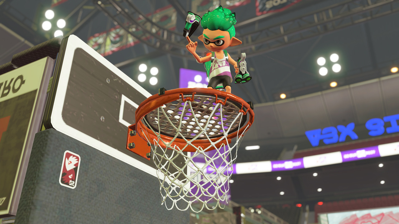 Meanwhile, the new map is called Goby Arena, and is basically a basketball court that is currently playing host to a Splatoon fight with it's own obstacles on the floor. As you can see from the photos below, this is multi-level and will give you plenty of chances for line-of-sight, sneak attacks, and painting up areas that others may not even think are possible to get to, let alone touch. No official release date has been given yet as to when we can see these added to the game, but if Nintendo is showing off pictures, best bet is within the next month.