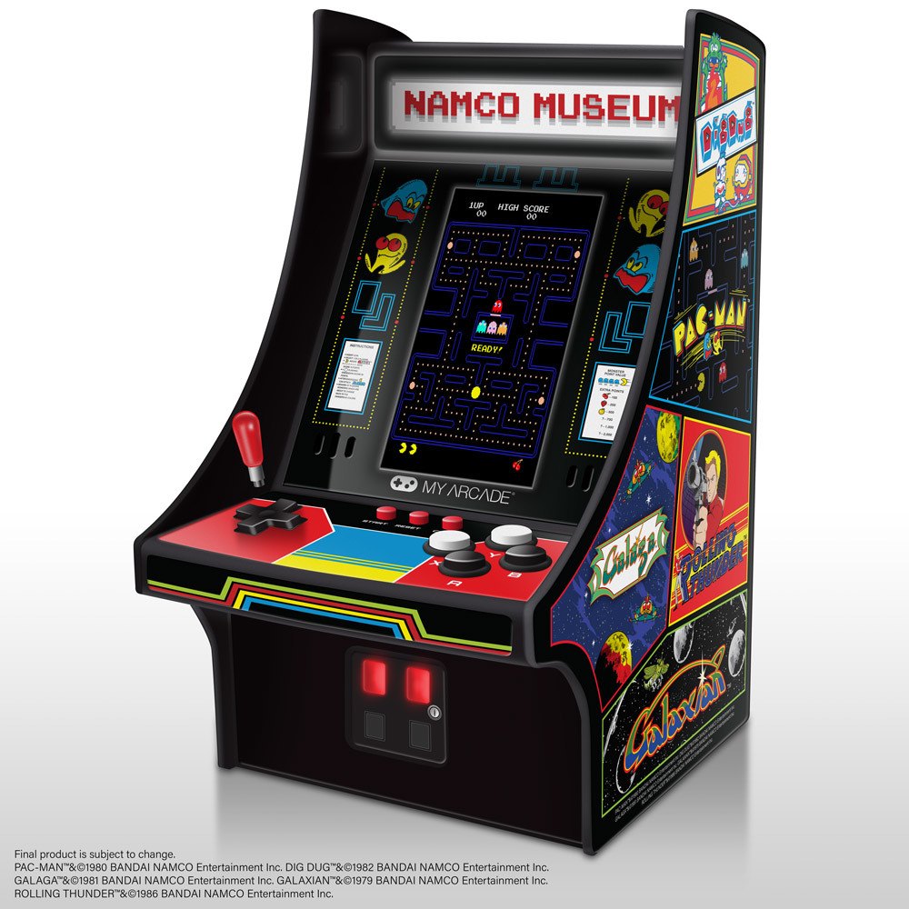 Another from the Namco side of life is this new Namco Museum mini-arcade. This thing includes an entire series of games from the old Namco library, much like you would expect from the games that have been released over the years. You can see some games on the side of the box like Dig Dug and Galaga, but we didn't receive a full library listing at the time we were talking to them.
