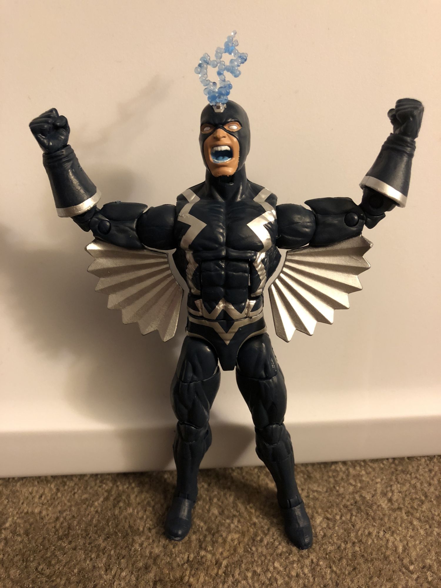Let's look at the comic figures first. Black Bolt gets an update, with interchangeable heads. Out of the two, I prefer the open-mouthed-I'm-yelling head for sure. I really wish that the wings were removable; it makes the figure look silly when you try to pose him any other way. The paint aps on mine are really well done, and overall this is going to become my default Black Bolt. A worthy redo.
