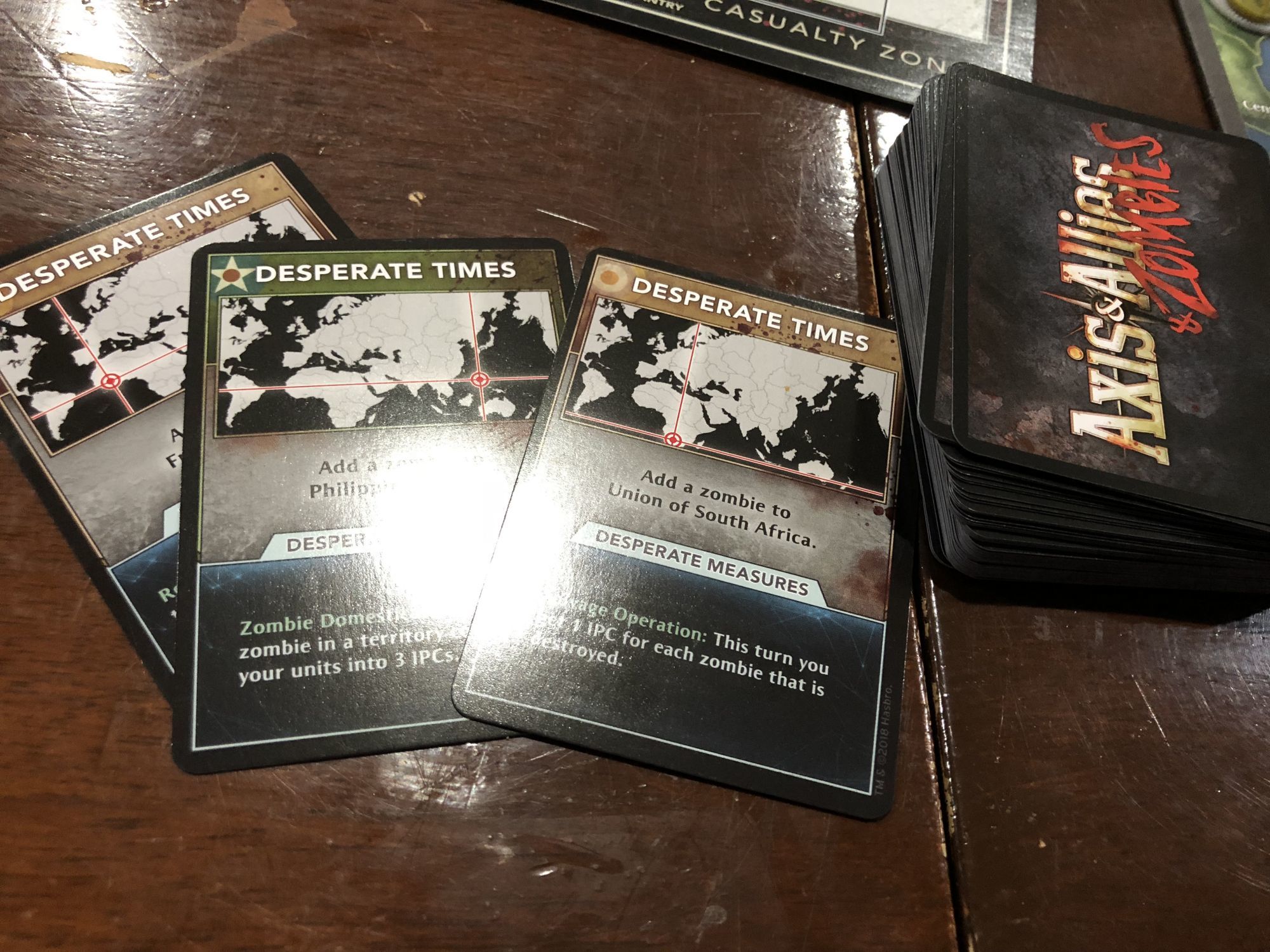 At the start of every new round of terns, you'll need to draw cards letting people know where a new zombie has cropped up. Sometimes it's on land you or an enemy controls, sometimes its in brand new areas such as Spain, which then makes the country active (as opposed to how it was in WWII) and worth a point value if you can eradicate the zombies from the playing field. There's also chances for the zombies to multiplay if you don't bother going into those areas or if you simply try to ignore them for periods of time without trying to deal with the situation.