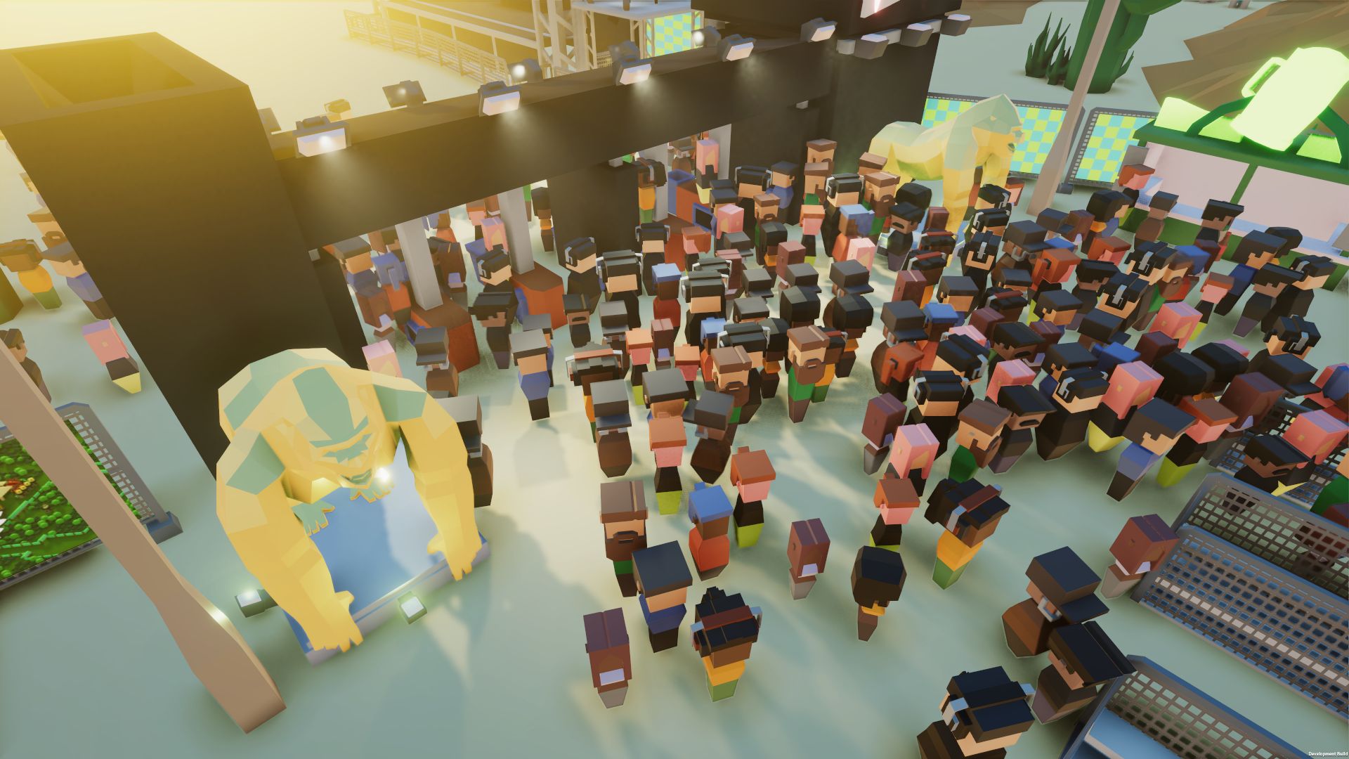 Festival Tycoon is a music festival management game with additional RTS game play elements. The game is separated into build- and live part. During the build part, the player's tasks include planning the location layout, booking bands with fitting genres, organizing the stage line-up, looking for sponsors, selling tickets or signing broadcast contracts. Besides that, the player can micromanage a lot of different systems to make sure everything is planned perfectly. In the following live part, the visitors arrive at the location and the festival starts. The player must sort out different problems like empty food courts, disputes between visitors or catching vandals and pickpockets. Other tasks include welcoming bands or crowd control. When the festival is over, it's time to start planning for the next season using the earned profit – if there is a profit.
