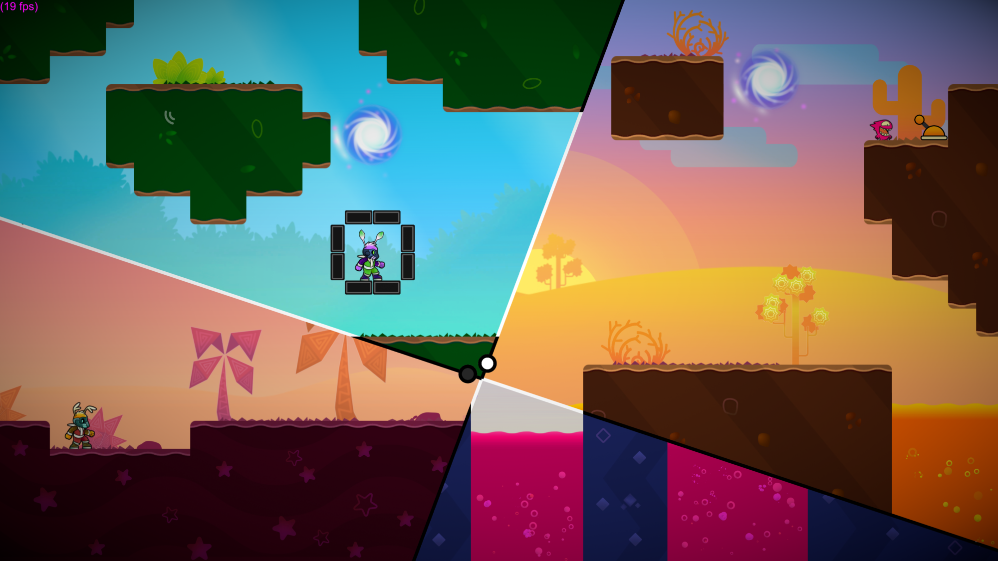WorldSplitter is a 2D² puzzle platformer, challenging you with multidimensional puzzles. You'll travel through wonderful and fantastic worlds that are beautifully animated and full of tricky challenges. The game features a unique gameplay mechanic: A combination of jump and run elements and logical thinking puzzles. Each level consist of two parallel worlds separated by the "Dimension Rift". The character can move freely through the Rift and interacts only with the visible parts of both worlds. Each one of the 60 levels included in World-Splitter will consist of two parallel dimensions. Players must manipulate dimension rifts to navigate across visible parts of the stage, save critters, and reach their exit. Obstacles like enemies, levers, mechanical platforms, portals, and gravity fields are designed to push one's logical thinking skills to the limit.