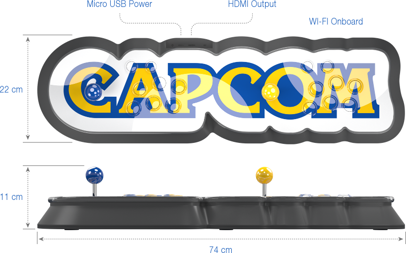 Have you ever wanted every arcade version of a Capcom game at your disposal complete with a fight stick? Now you have that option! Today the company unveiled the Capcom Home Arcade, a portable dual arcade stick with 20 pre-programmed games inside that is supposed to bring the ultimate Capcom experience to your home. But before you get super excited, there's a few things to take note of. First off, this is not a regularly sized arcade stick, it's about a size smaller than the average ones you'd see from companies like Razer and HORI measuring roughly 4 inches high, 8 inches tall and 28 inches wide. So its barely the same size as an original arcade setup.