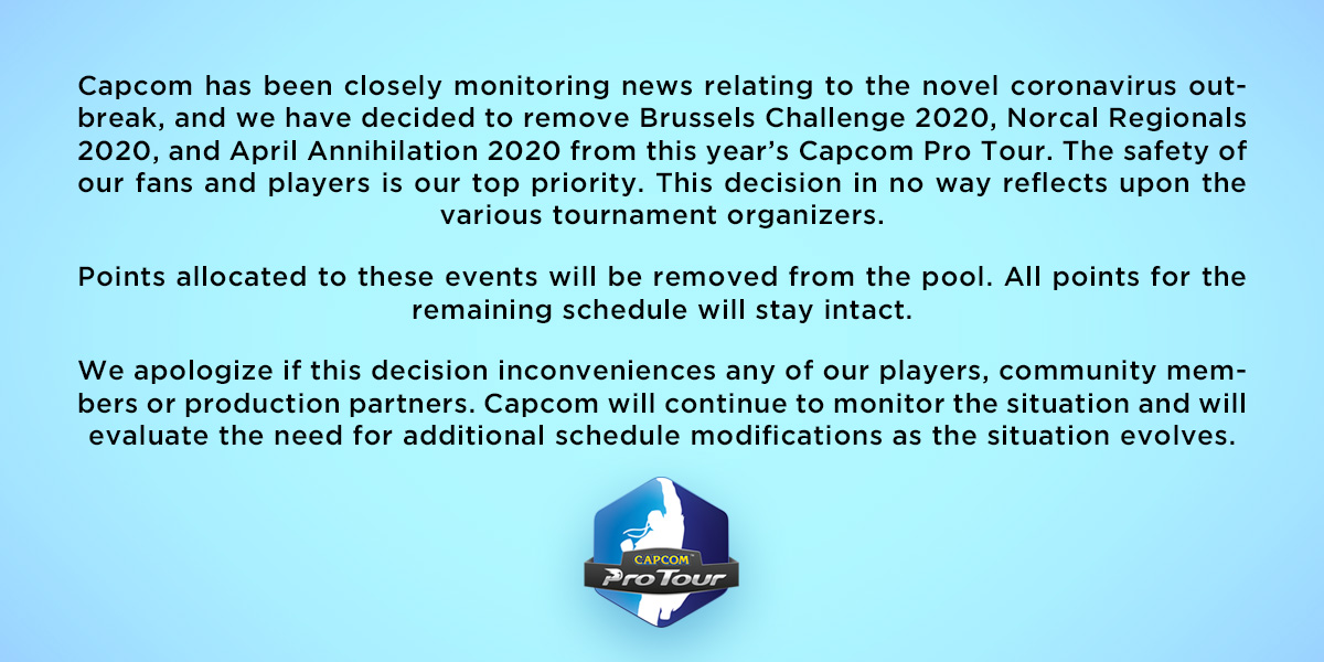 Posted in: Capcom, eSports, Games, Street Fighter, Street Fighter V, Video Games | Tagged: capcom, Capcom Pro Tour, coronavirus, eSports, street fighter, Street Fighter V