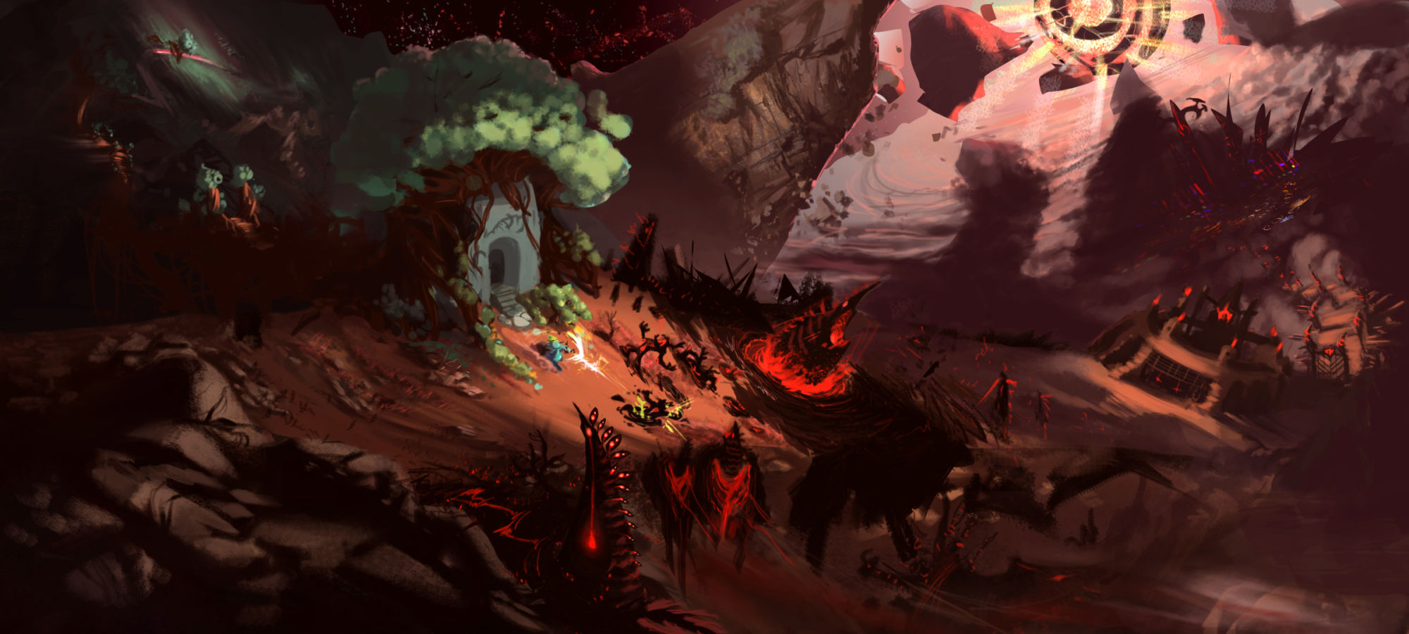 Moving on to the game, a lot of the gameplay falls into the idea of level maintenance as your character and the others who join you along the way are basically defeating enemies and bringing lush greenery back to the environment that's covered in darkness.