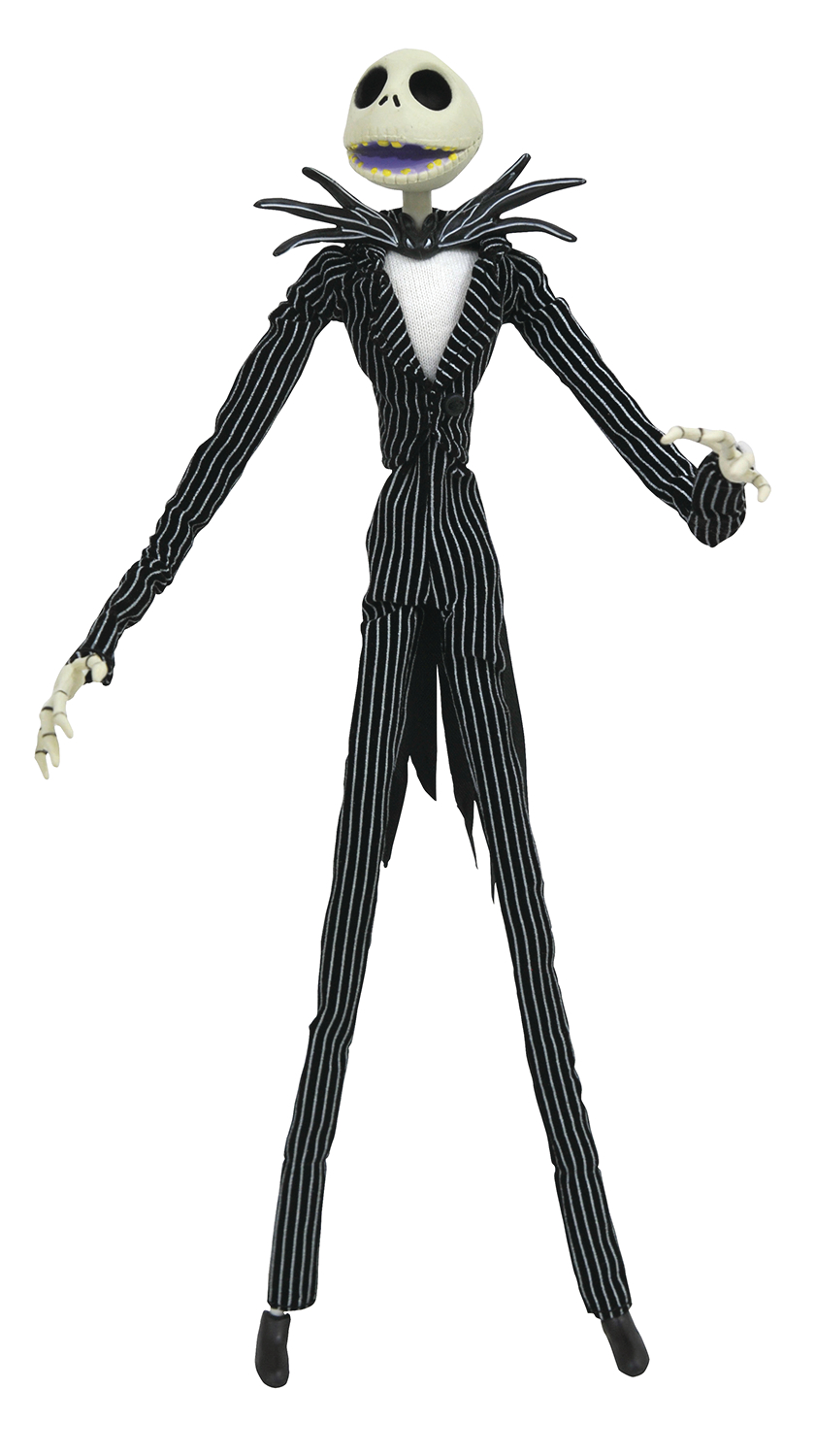 A Diamond Select Toys release! Tim Burton's The Nightmare Before Christmas is turning 25 this year, and Diamond Select Toys is celebrating with a new line of cloth-costumed, fully poseable action figures! Measuring approximately 10 inches tall, each figure features real fabric outfits, multiple points of articulation and character-specific accessories. Jack comes with a podium, the Mayor comes with a telescope, Pumpkin King Jack comes with a sign and torch, and Sally comes with her oven and cauldron! Each figure comes packaged in a coffin-shaped window box.