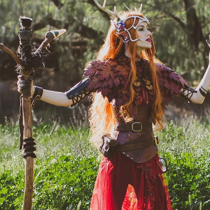 But shortly after the costume went live, several people were quick to note that the skin looks like Keyleth. The half-elf druid of Vox Machina and headmaster of the Air Ashari from the first campaign of Critical Role, played by Marisha Ray. In fact, they look a lot alike, as you can see from this promo photo below shot in 2016. The crown of antlers and flowers, the cape of autumn leaves, the brown wraps and leggings. Hell, they even made her a redhead.