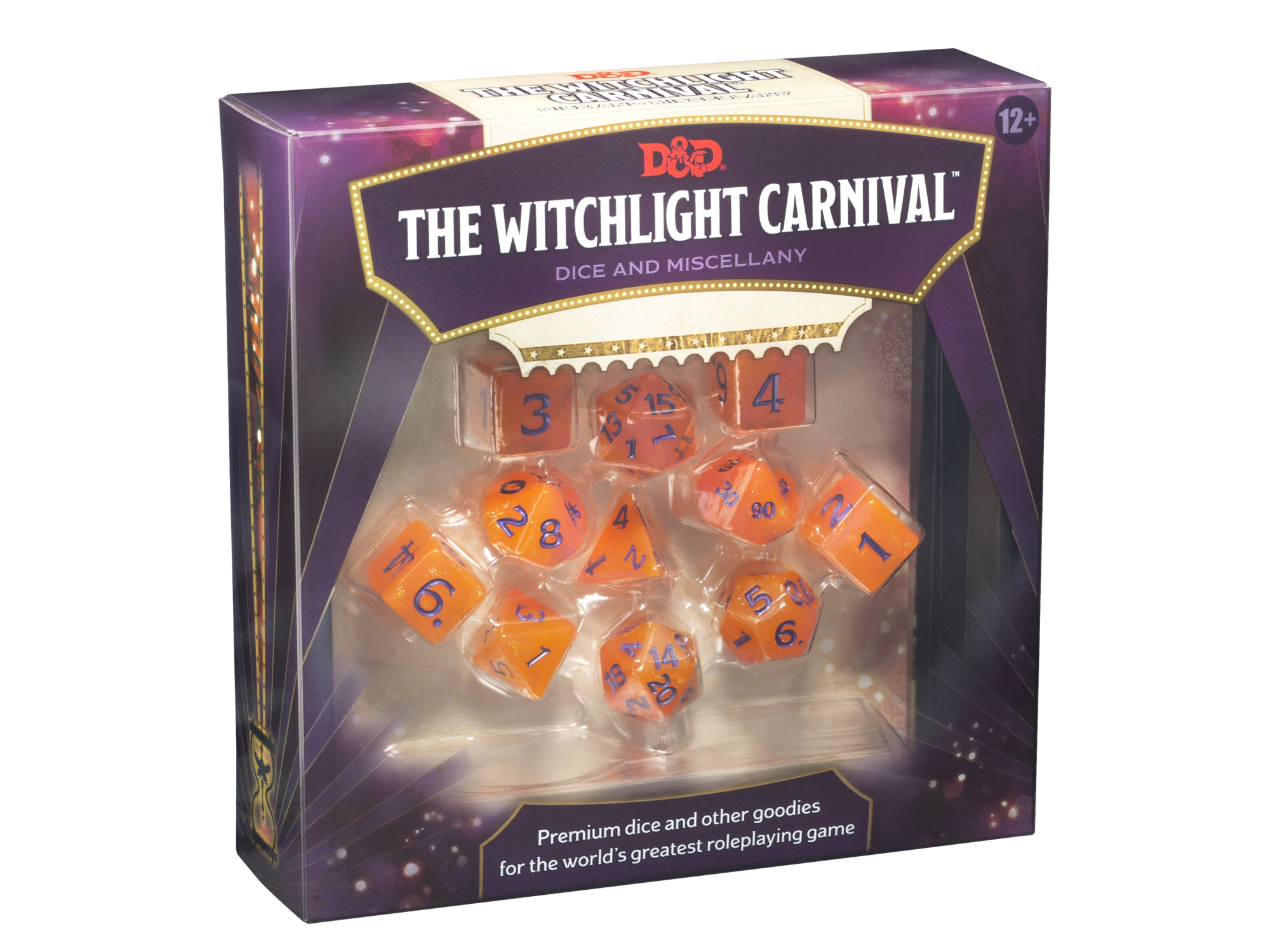 The wild, wonderful Witchlight Carnival travels from world to world, bringing the magic of the Feywild with it. Before you get your ticket, grab the right dice for the occasion. The set includes: