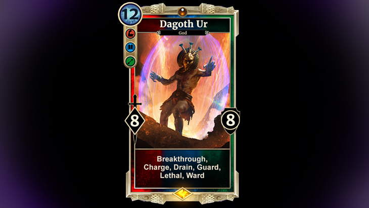 Normally a Legends deck can only contain up to two attributes or "colors" however the Houses of Morrowind will change that. The new batch of cards contains a few powerful three-attribute cards, meaning they totally break that rule as if it didn't exist. Naturally, Dagoth Ur is one of those three-attribute cards. Once you put Dagoth Ur into your deck, you can now use cards from all three of his attributes in that deck.