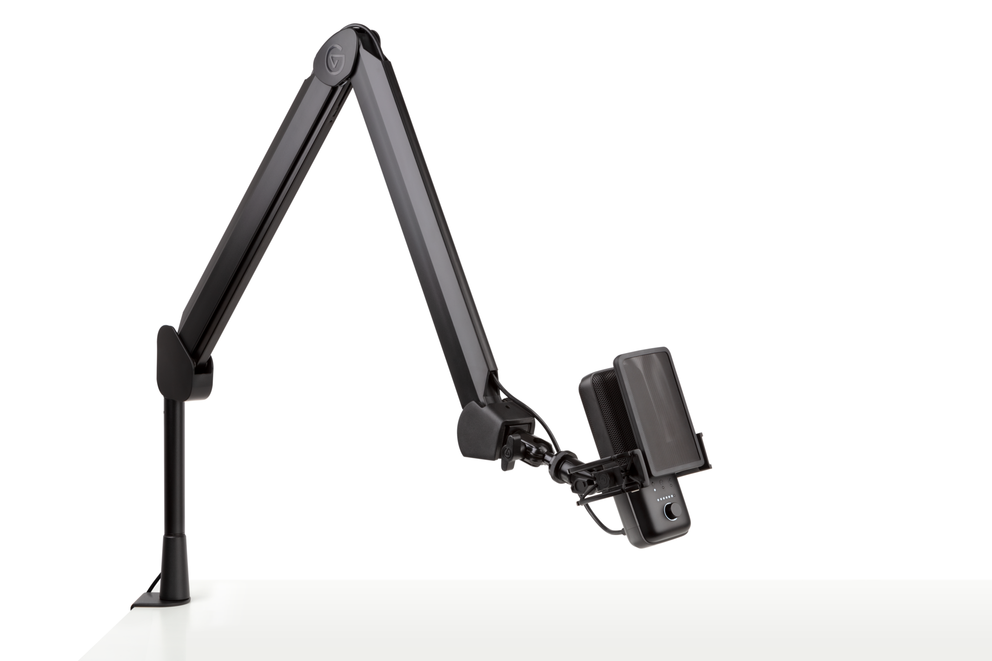 Joining Elgato's selection of Wave audio gear and accessories, Wave Mic Arm and Wave Mic Arm LP offer content creators, radio broadcasters, business professionals – anyone with a desktop audio setup – two premium-quality mounting options. Wave Mic Arm, a traditional suspension boom arm, stands tall at 750mm / 29.5in and comes with an extension riser that adds another 150mm / 5.9in of height to reach over bigger obstacles such as computer monitors. Wave Mic Arm LP, by contrast, is an all-metal, low-profile boom arm that sits below the shoulder line to ensure an unobstructed view while making a stunning impression on and off camera. Streamlined and elegantly designed, both mic arms feature hidden cable channels with removable covers for easy access, an adjustable clamp mount that fits popular desk designs, and a ball head with a 1/4" screw plus 3/8"-5/8" adapters for ultimate flexibility.