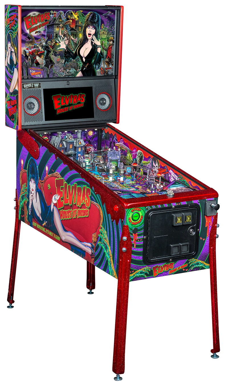 Trying to sell her mansion through "Alternate Realty", Elvira's house is haunted by the movie characters from her past. These ghouls, ghosts, monsters, and strange assortment of vintage characters with horrific acting skills seek revenge on Elvira while she and the player confront them, sending them back to the "film" from which they came! Elvira's House of Horrors immerses players in a fun, campy, B-movie universe filled with all of the humor expected from the Mistress of the Dark including custom speech and, in a pinball first, exclusive filming of Elvira for custom video scenes featured throughout the game!