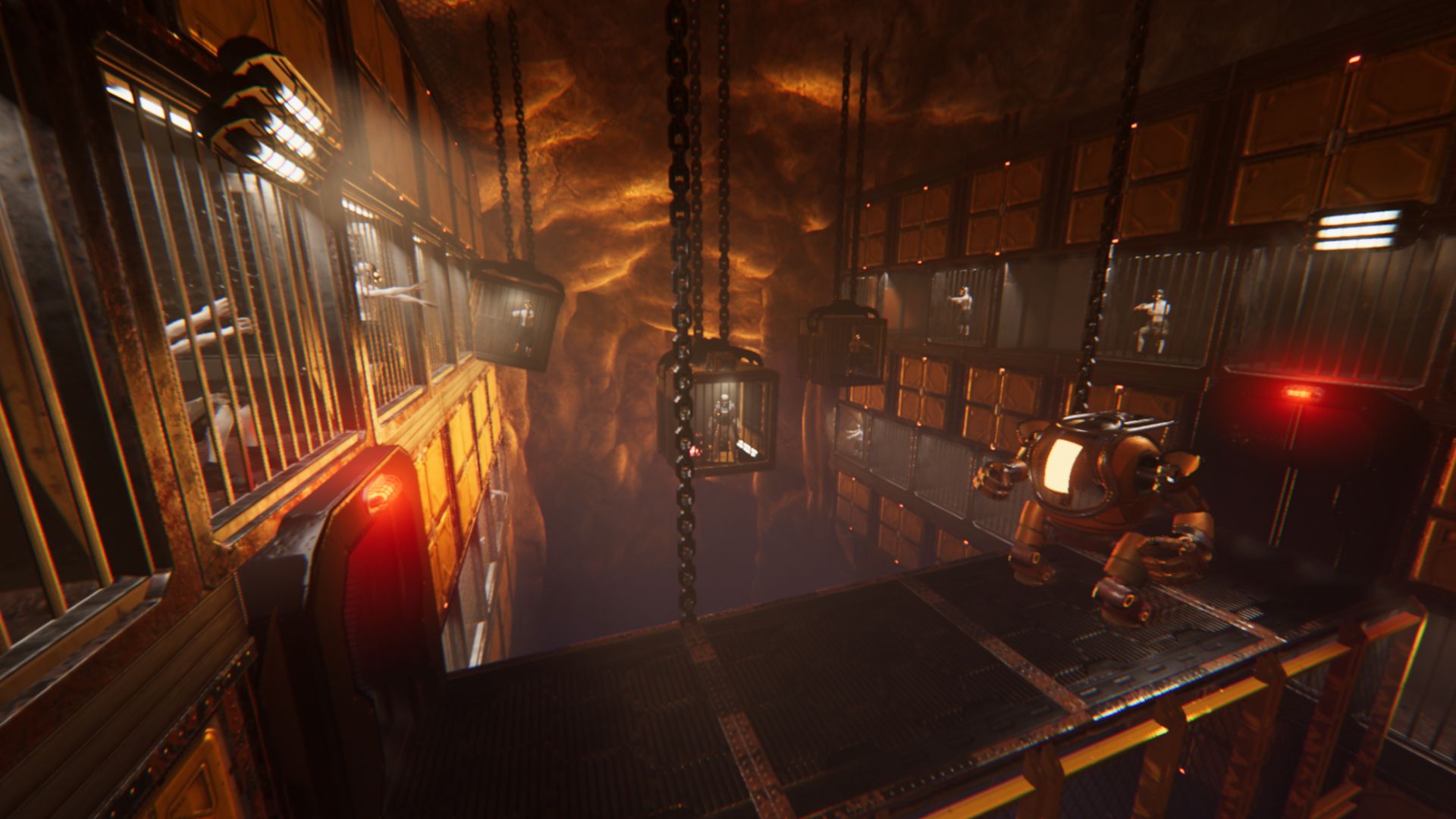 The story of Fallback follows a group of rebels attempting to escape the underworld and bring life (and Humanity) back to the long-abandoned surface. After a terrifying cataclysmic event, humanity retreated to the safety of an enormous underground bunker constructed by the mysterious Vesta Corporation. In order to ensure the facility is well-maintained and the remnants of humanity are cared for, Vesta has stocked the subterranean safe house with an army of robotic caretakers. Fast forward hundreds of years to the present, and what's left of the human population yearns to return home — taking with them a bioengineered plant that promises to bring life back to the surface. Choosing to reject the hapless humans' request for freedom, these cybernetic custodians will try their best to make sure the humans remain underground under lock and key. In order to break the icy grip of their robotic overlords, a scrappy group of rebels have banded together, strapped on their jetpacks, and are ready to fight their way out and reclaim the Earth — one metallic monster at a time.