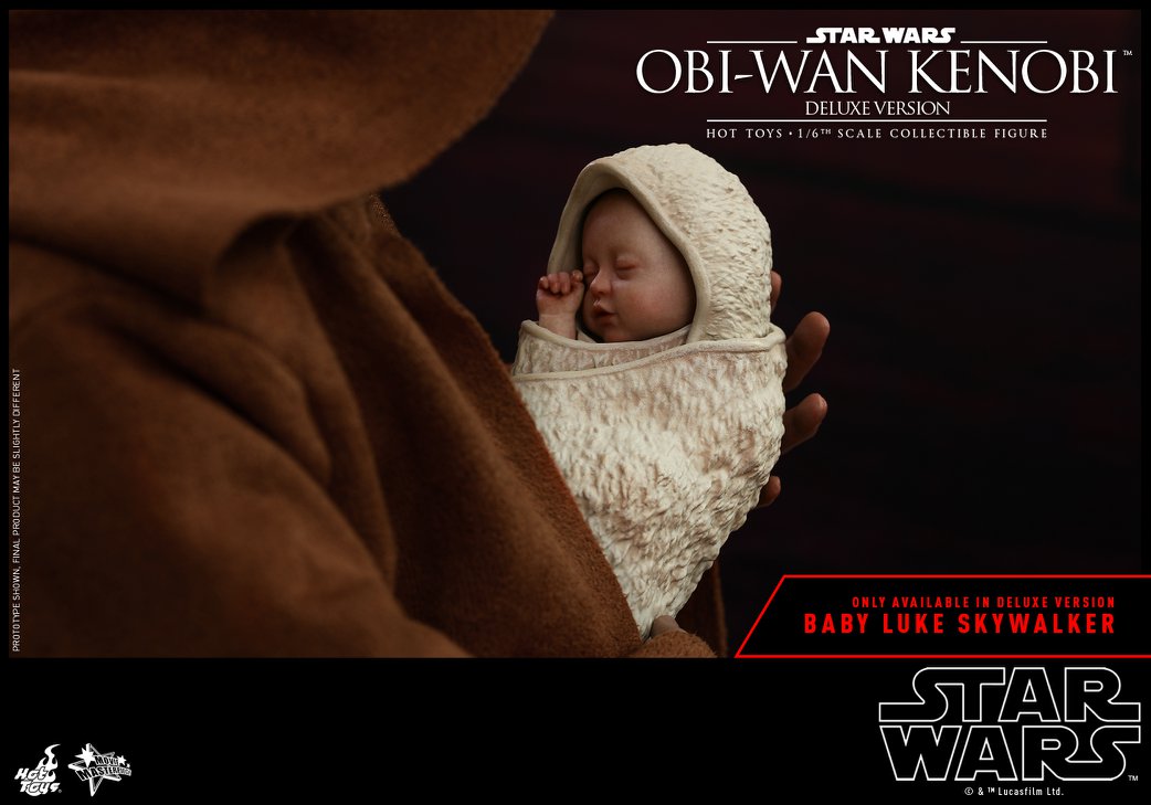 Ewan McGregor's prequels version of Obi-Wan Kenobi is coming soon from Hot Toys. Available in both regular and deluxe versions, he will come with his jedi robe and tunic, an LED lightsaber, and a comlink. The deluxe version will include a baby Luke Skywalker, and hologram versions of Palpatine and Anakin Skywalker. Both versions will include interchangeable graphics cards for the base an severed battle droid parts. He will be available in early 2019.