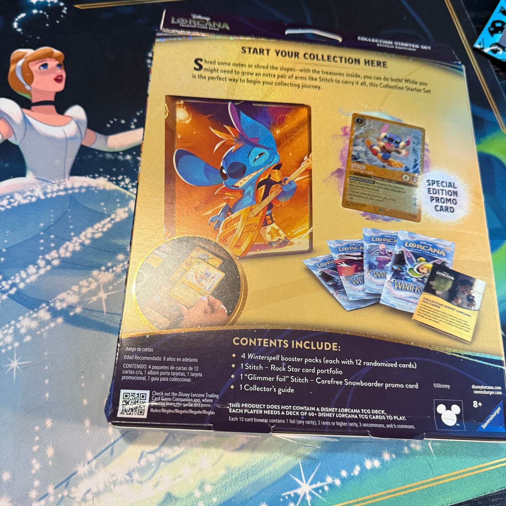 A new Disney Lorcana Collection Starter Set is here for Winterspell that gives fan four packs and a new Rock Star Stitch book
