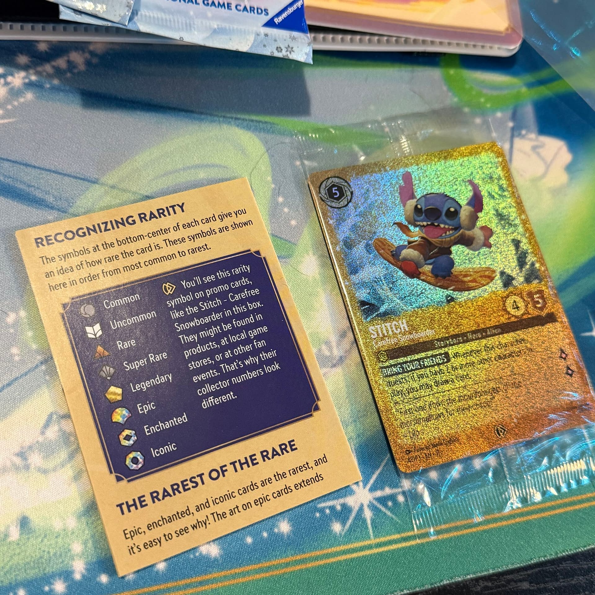 - 1 "Glimmer foil" Stitch – Carefree Snowboarder promo card