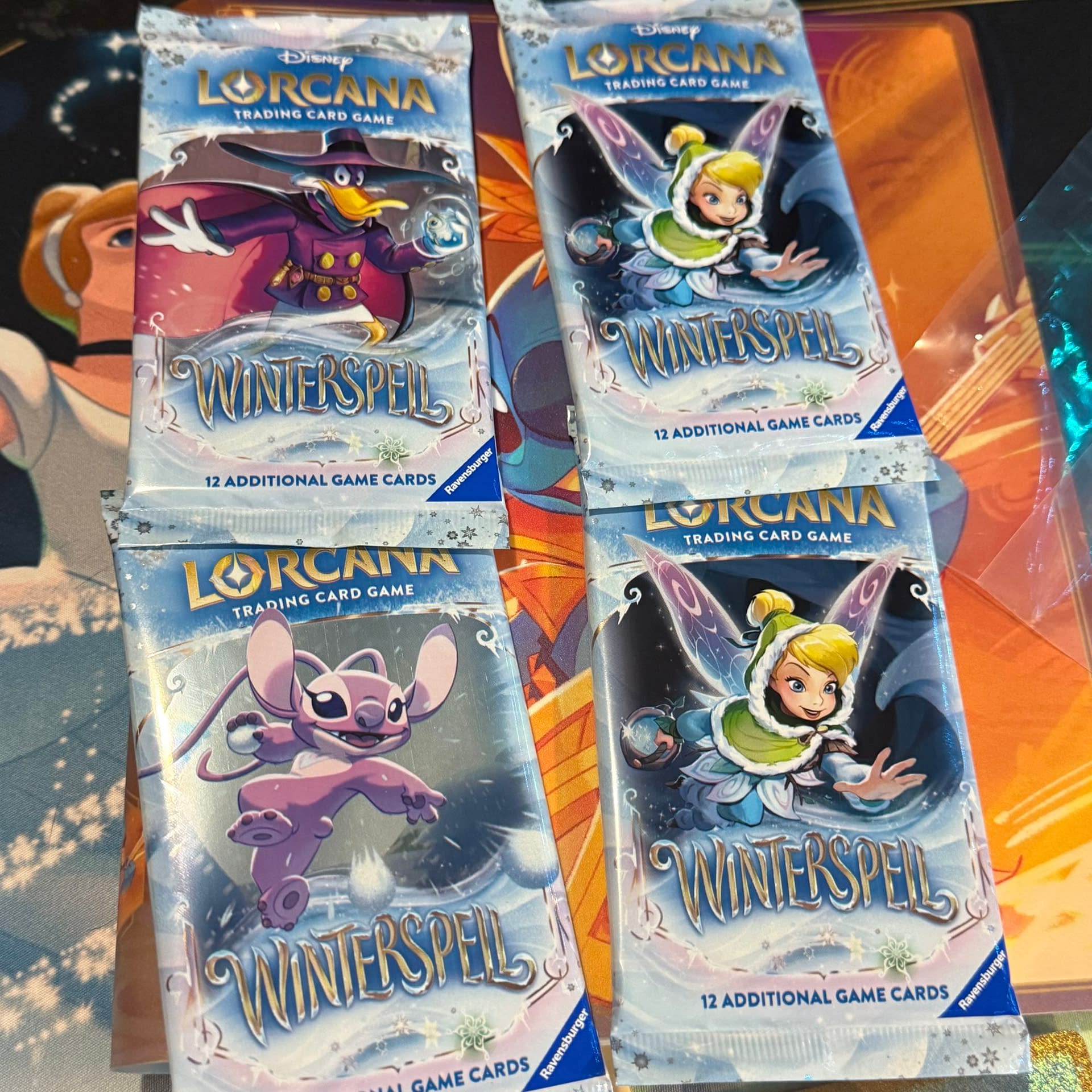 - The Winterspell Starter Set includes 4 booster packs, a Stitch collector’s guide, and a foil promo card.