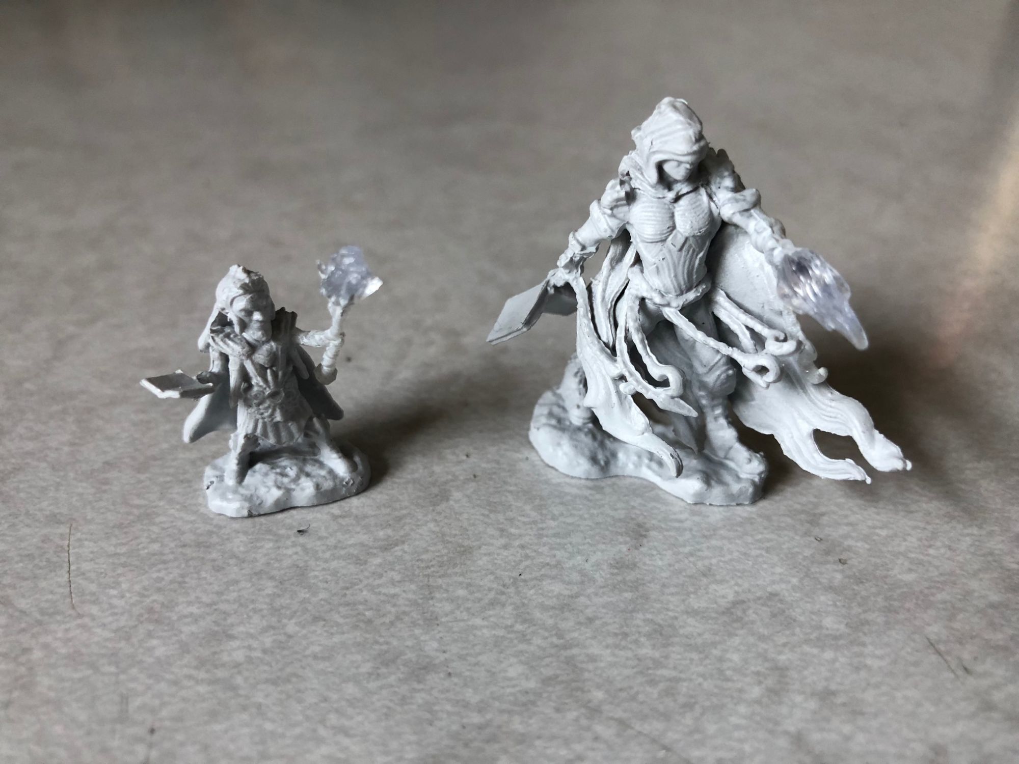 Going into the Pathfinder sets from Wizkids, we cracked open the Evil Wizards box. While they don't really go into detail of what's here, it appears you get a halfling and an elf. I like the presentation of both for different reasons. The halfling looks pleased with himself as if he knows he's a powerful wizard and there's nothing you can do to stop what he has planned for you. Meanwhile, the elf looks much more mysterious and cloaked in garbs that hide the true nature of who they are and what magic they possess.