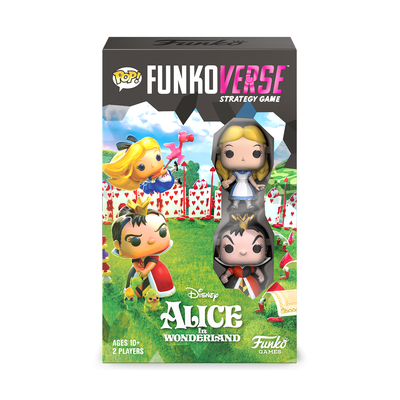 Look into the magical wishing well! You'll see enchanting objects and memorable characters from your favorite Disney Princess stories. Race to find two pictures from the same story! Toss your token into the well and point out two pictures from the same Disney Princess story. If you're right, collect one of the coins for your Disney Princess board! Be the first to collect 4 coins in a row to win! This game is "Babysitter Approved": Easy to learn, easy to put away, and fun to play! (Available June 2021, ages 4+, $19.99 MSRP, 2-4 players, 20 minutes average playtime)Funkoverse Strategy Game: Alice in Wonderland 100 2-Pack