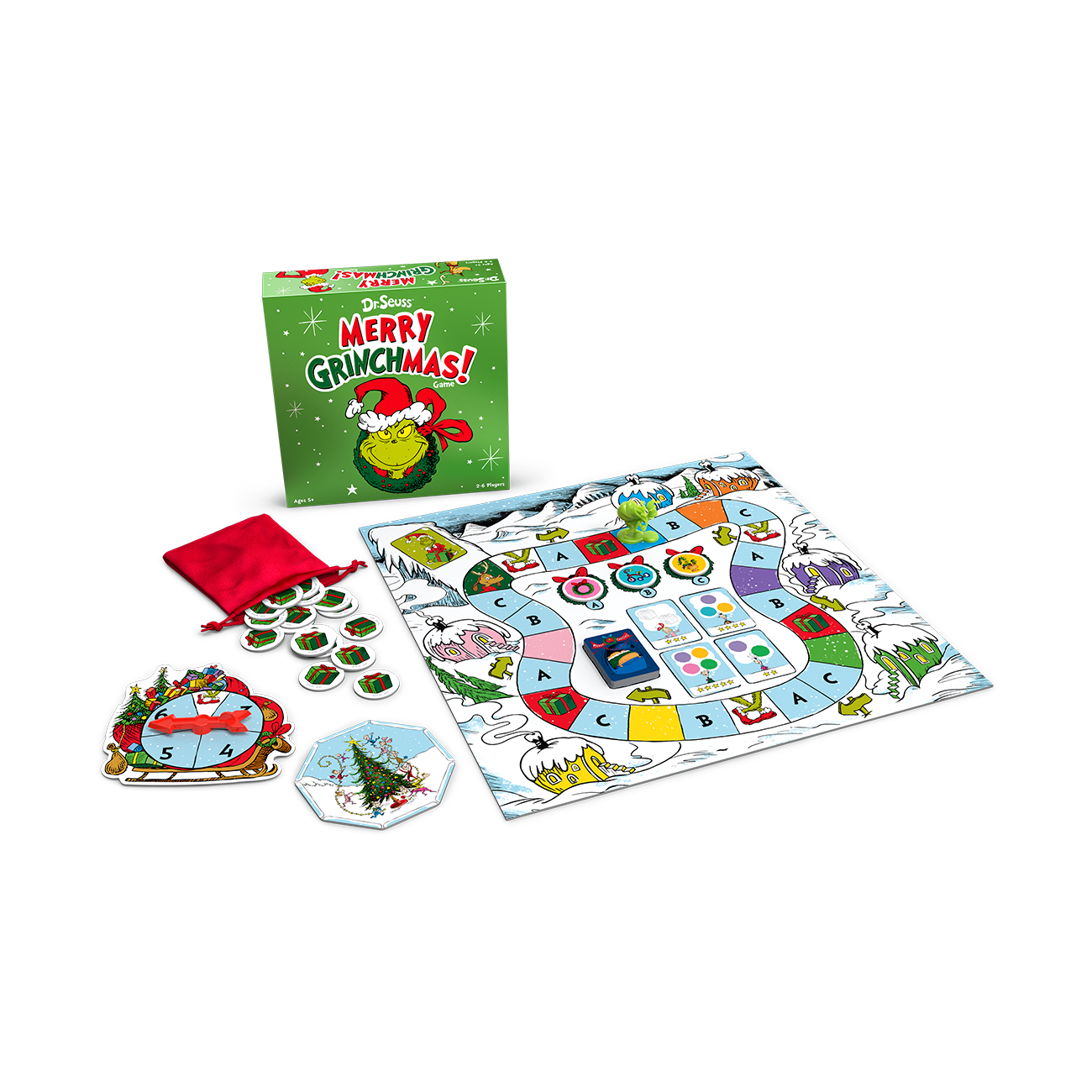Every Who down in Who-ville liked Christmas a lot. But the Grinch, who lived just north of Who-ville, did NOT! While the Whos are busy dreaming of Christmas, the Grinch is slinking around Who-ville trying to stop Christmas from coming! Work together to collect presents to make the Whos' holiday dreams come true before the Grinch steals them away. Collect more points than the Grinch by the time Whos start singing to win! (MSRP $19.99, Ages 5+, 2-6 Players, 30-minute gameplay.)