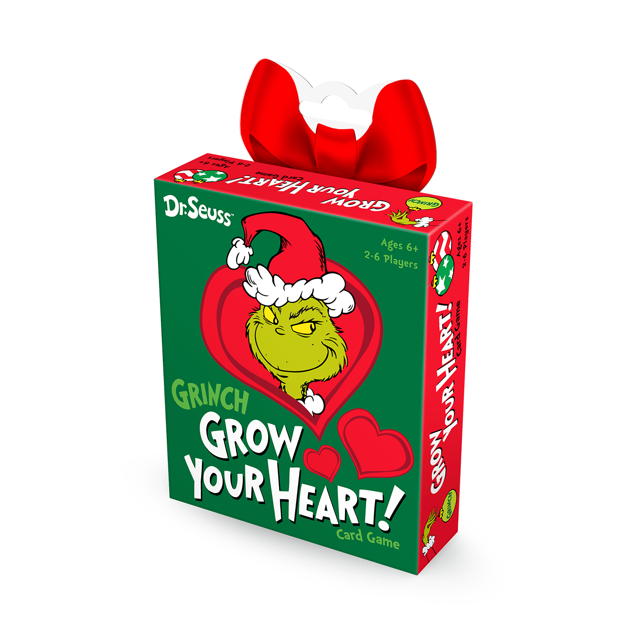 It's Christmas in Who-ville! What trimmings will you choose? Oh no—the Grinch is taking the presents, the feast, and even the tree! But when the Whos celebrate anyway, the Grinch's heart grows three sizes. Take turns playing as the Whos or the Grinch. Draw cards and choose which Christmas goodies to keep. The Grinch steals cards away to improve his score, but each turn his heart grows! Collect sets and then score your cards to try to get the most points! (MSRP $6.99, Ages 6+, 3-6 Players, 30-minute gameplay.)
