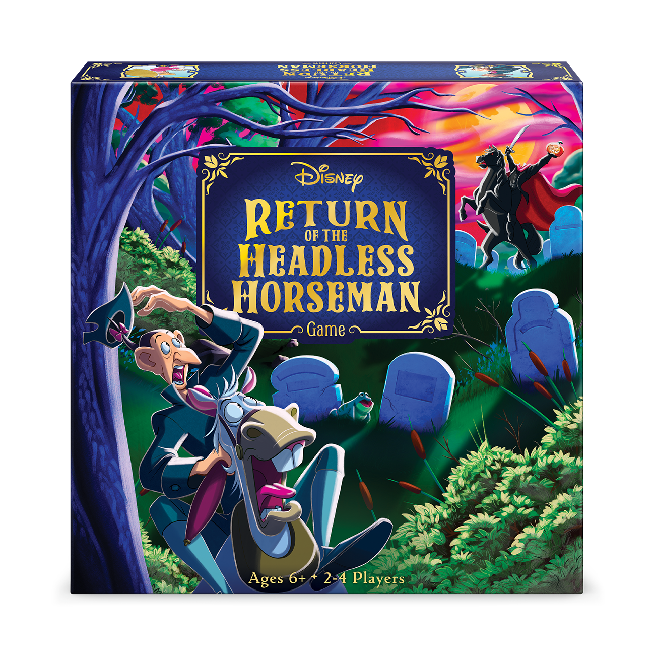 Disney Return of the Headless Horseman Game: After midnight in Sleepy Hollow, the town comes to life with spooky sounds and creepy creatures! Ichabod is frightened and needs your help! Work together to get him to the covered bridge before the Headless Horseman heads him off! It's a family game of frightful fun! (MSRP: $19.99, Ages 6+, 2-4 Players, Available Spring 2022)