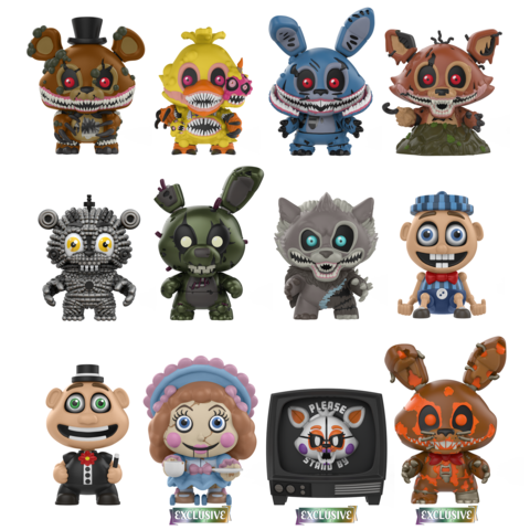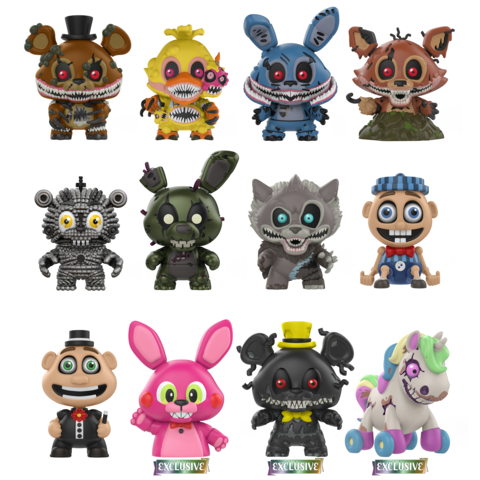 LOTS of Five Nights at Freddys will be coming as well. First- Mystery Minis. Exclusives here include Stanley, Bonnet and Nightmare at Hot Topic, Paper Pilate Pals, Theodore and RXQ variants at Gamestop, and Ella, Jack-O-Bonnie and Lolbit at Walmart. These will be out in March.