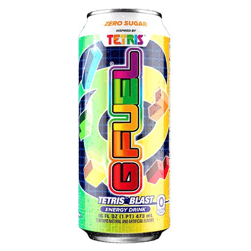 The G Fuel Tetris Blast tub energy formula is sugar-free and loaded with antioxidants from 18 different fruit extracts. Each serving has only 15 calories and contains 140 mg of caffeine. A single 16 oz G Fuel Tetris Blast Can has zero calories and contains 300 mg of caffeine. Like all G Fuel Tetris Blast tub and can energy formulas, G Fuel Tetris Blast contains G Fuel's proprietary energy and focus-enhancing complexes, so you can rotate and move Tetriminos with ease and clear as many lines as possible. The new flavor's packaging is decorated in a vibrant rainbow of color, symbolic of G Fuel Tetris Blast's energizing rainbow candy flavor. It also features Tetriminos in their iconic shapes and colors dropping into the rectangular Matrix in true Tetris form.