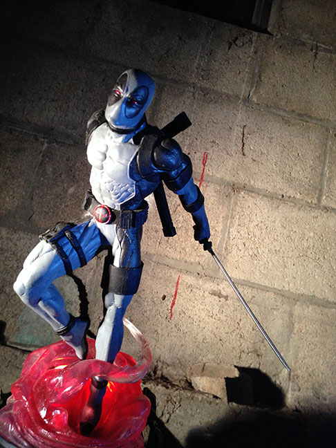Now available at GameStop stores and online, the Unmasked Deadpool diorama features an exclusive unmasked head sculpt, showing the scarred mug of Wade Wilson, the Merc with a Mouth. Leaping from a swirling flame, Wade wields his twin katanas with professional precision in this handcrafted sculpt by Jean St. Jean, based on a design by Nelson Asencio. Also available from GameStop is the exclusive X-Force edition of Deadpool, in which Wade wears a masked, grey version of his costume to mark his time with that black-ops team of X-Men.