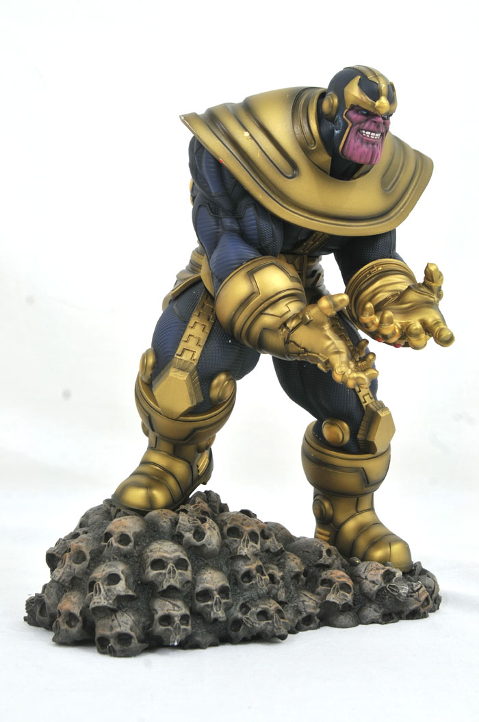 Coming this fall, the comic version of Thanos arrives to take on the heroic forces of the Marvel Universe! Standing atop a mountain of skulls, the death-obsessed Mad Titan strikes a menacing pose, with a sculpt by Alterton based on a design by Caesar.