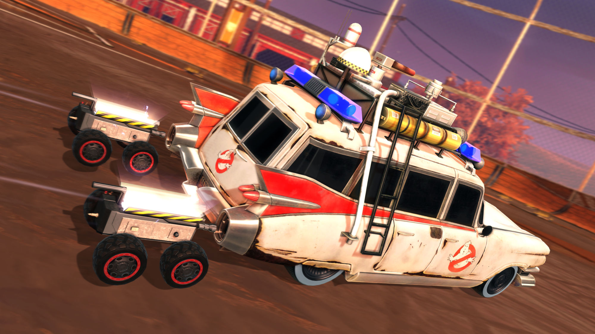 The Ecto-1 Bundle is now available in the Ghostbusters Tab in the Rocket League Item Shop for 1100 Credits and includes the iconic Ecto-1, signature white Ecto-1 Reel Life Decal, weathered Ecto-1 Reel Afterlife Decal, Ecto-1 Engine Audio, Ecto-1 Wheel, Ecto-1 BK Wheel, Spirits Boost, and RTV Trail.