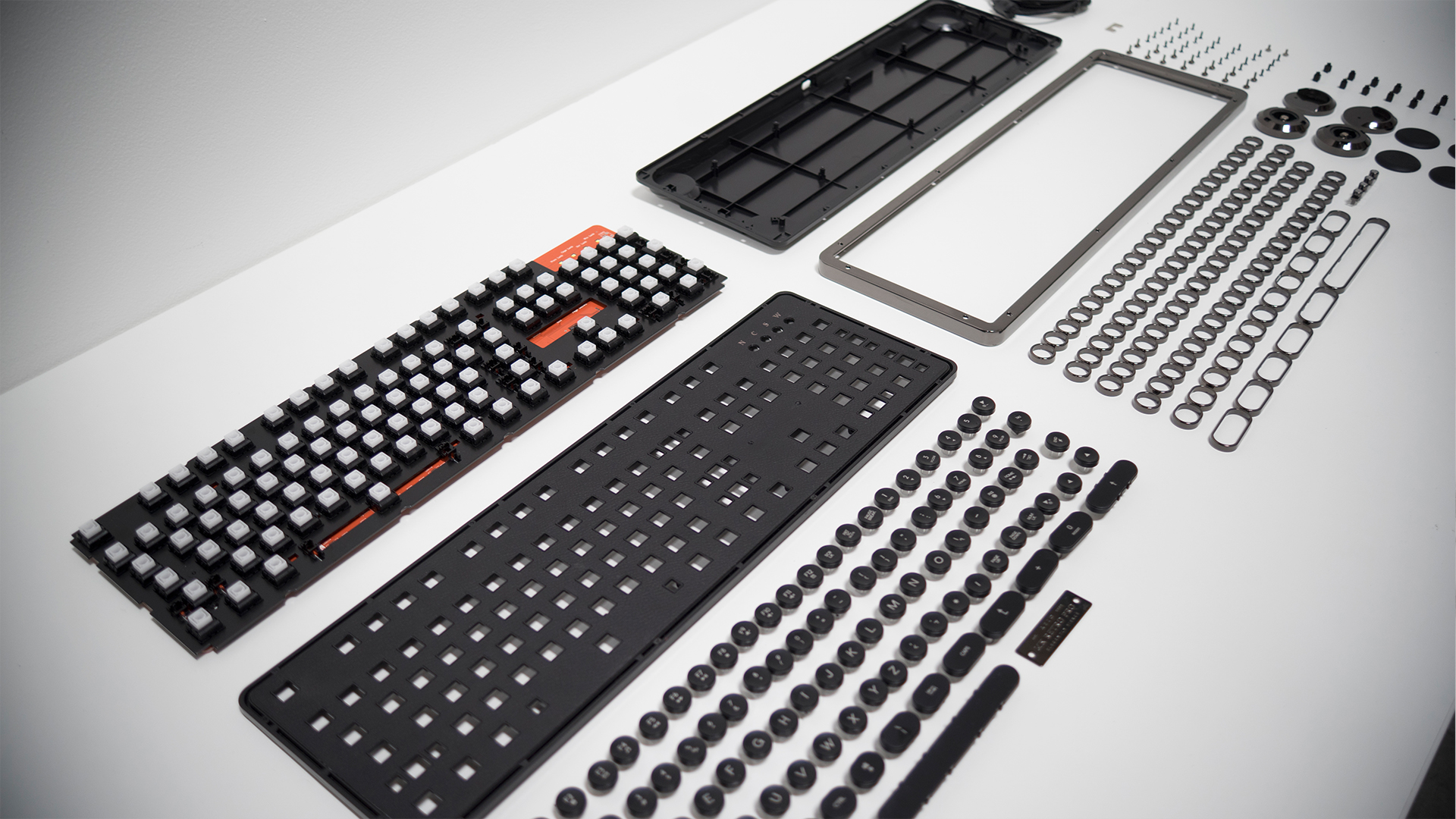 The key thing to know about this keyboard is that it was designed to be both stylish and efficient. Everything about the creation of the of the inner workings, as you can see from the photo below, was to maintain the same kind of sensitivity, reaction time, and functionality of a gaming keyboard. And in the process of doing so, try to give it a little class so that it stands out. That's a tall order to do and it takes a lot of time, precision, and care to make that kind of effort without royally screwing everything up and making something that's either ineffective on the gaming side or too modern on the visual side.
