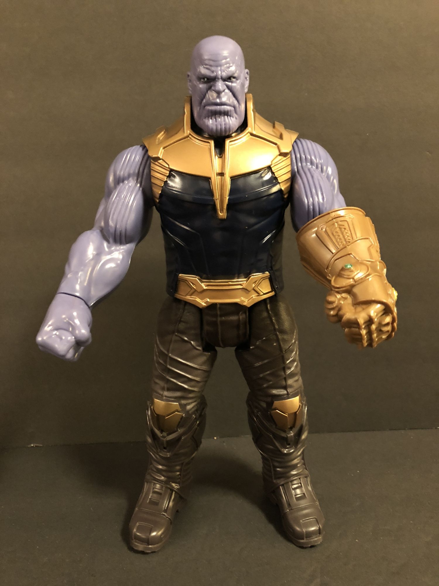 Once you get him out of the box, like all other Titan Heroes figures you start to both admire and loath the figure. The sculpt is actually really good. Some have said that they don't like the way Thanos looks without his helmet on, but I don't mind it. They did a great job with the scars and wrinkles, and his eyes make him look really pissed off. Limited articulation, of course; that is the style of the figure.