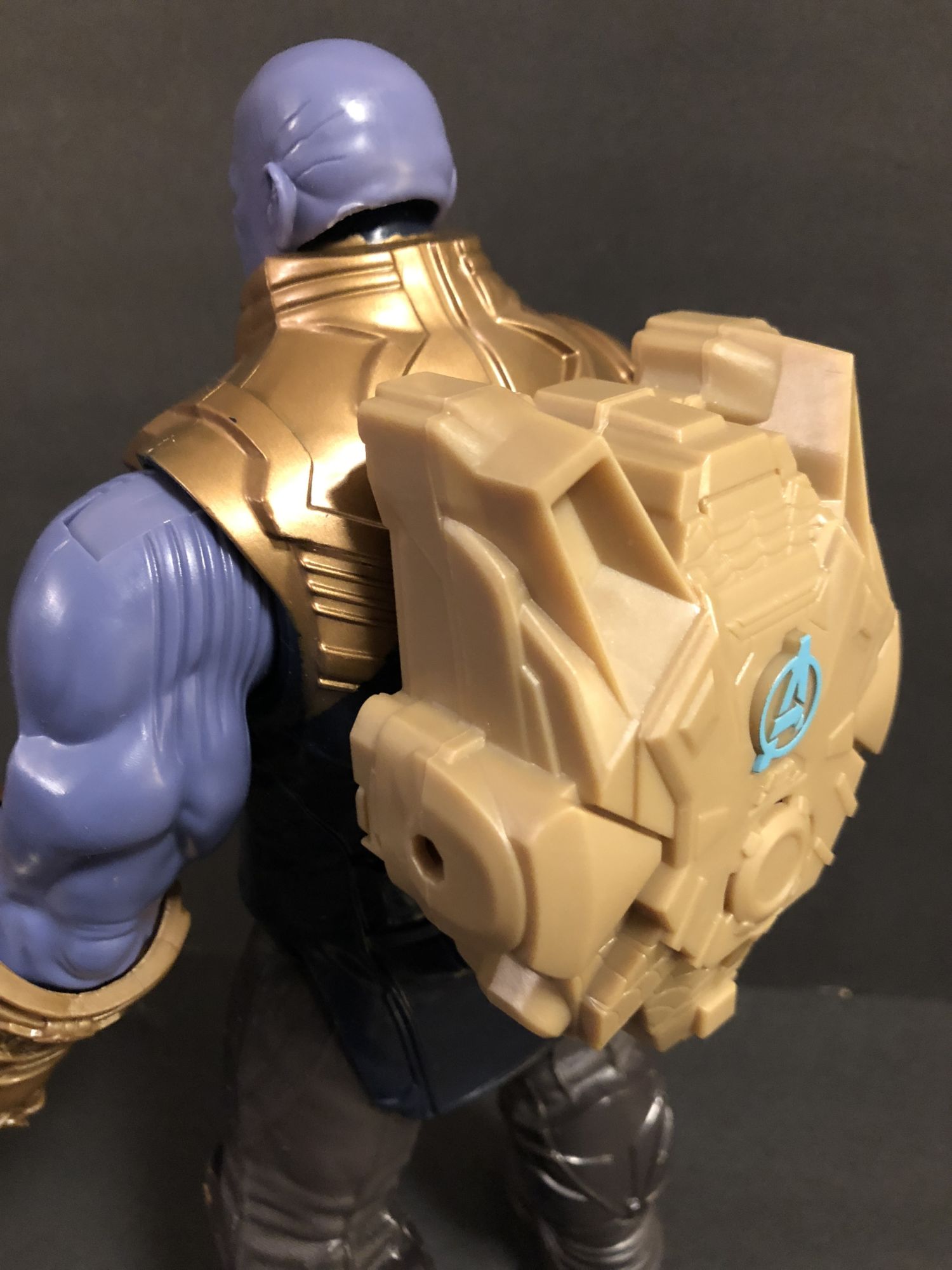 The neat feature with these is the FX piece. Thanos does not come with one, but if you take a piece that comes with one of the other figures and place it on his back, the FX recognizes who it is plugged into and Thanos will talk. Pretty spiffy. No spoilers in his dialogue, and it doesn't really sound much like Josh Brolin. He only has three phrases, and then some punching and what may be the Gauntlet flexing. "Your power is nothing compared to mine," "The Infinity Stones are mine," and "Suffer my wrath," are all that he says.