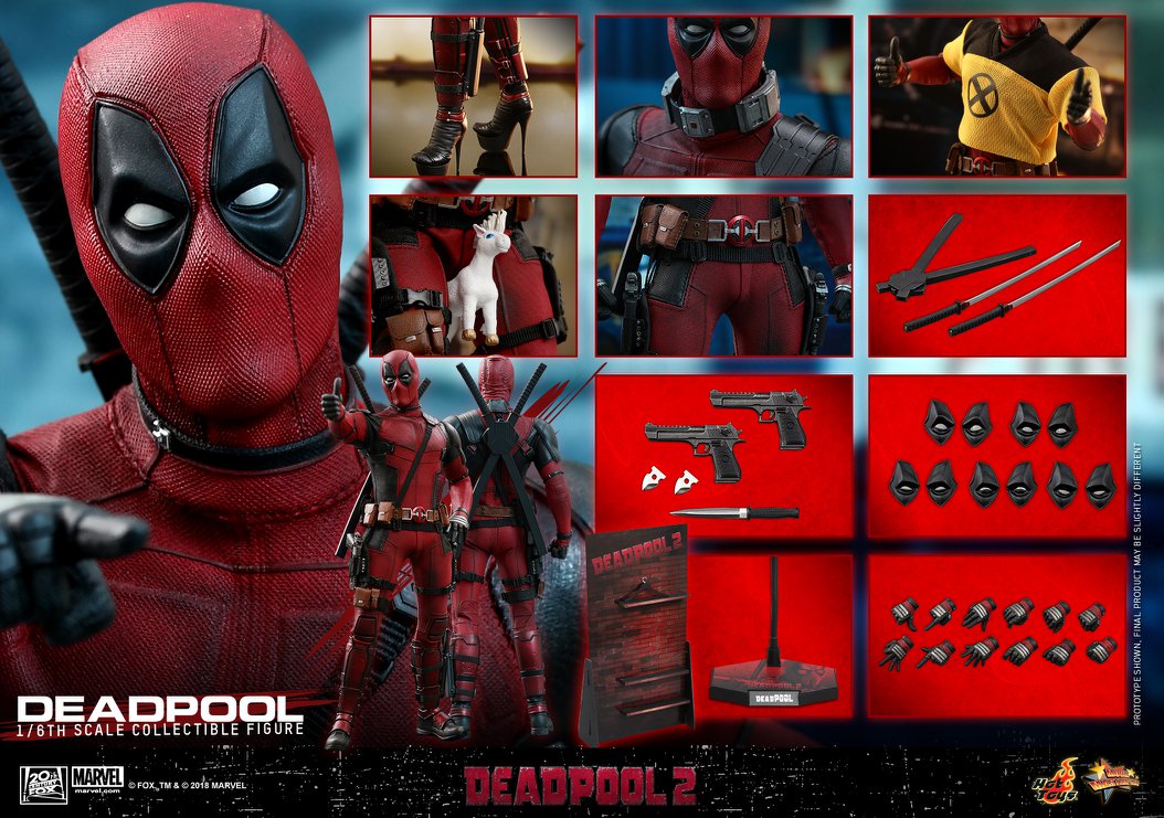 Deadpool fans who missed the first Hot Toys figure should be happy. They get another shot at adding the Merc With a Mouth to their collections. The Deadpool 2 Hot Toys figure will see release sometime in early 2019. He will feature numerous swappable hands, swappable eye pieces, pistols, katanas, a dagger, an X-Men trainee shirt, a unicorn, and a cool backdrop figure stand to hold all of it. As with all Hot Toys releases, he will also feature multiple points of articulation and detailed, screen-accurate garb. He is up for preorder now, and he will sell out like the first release did. You will want to click here and preorder now. Check out a ton of pics and details below.