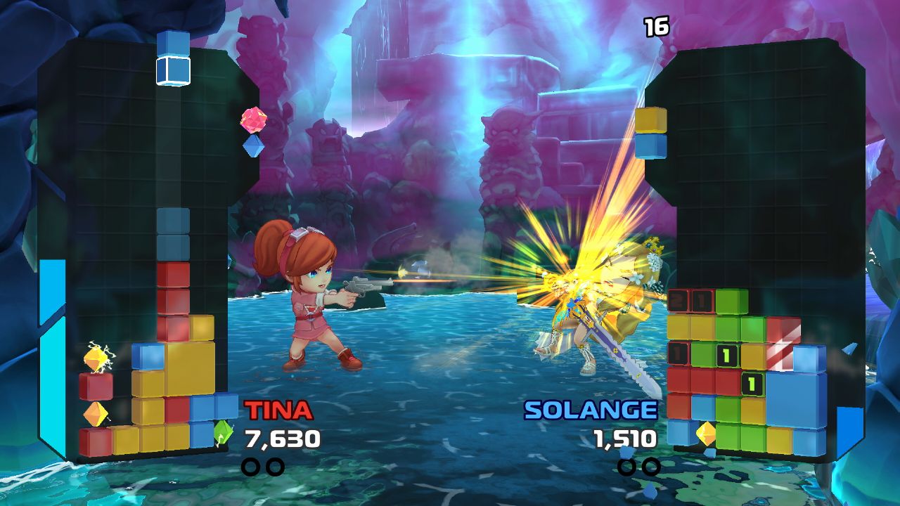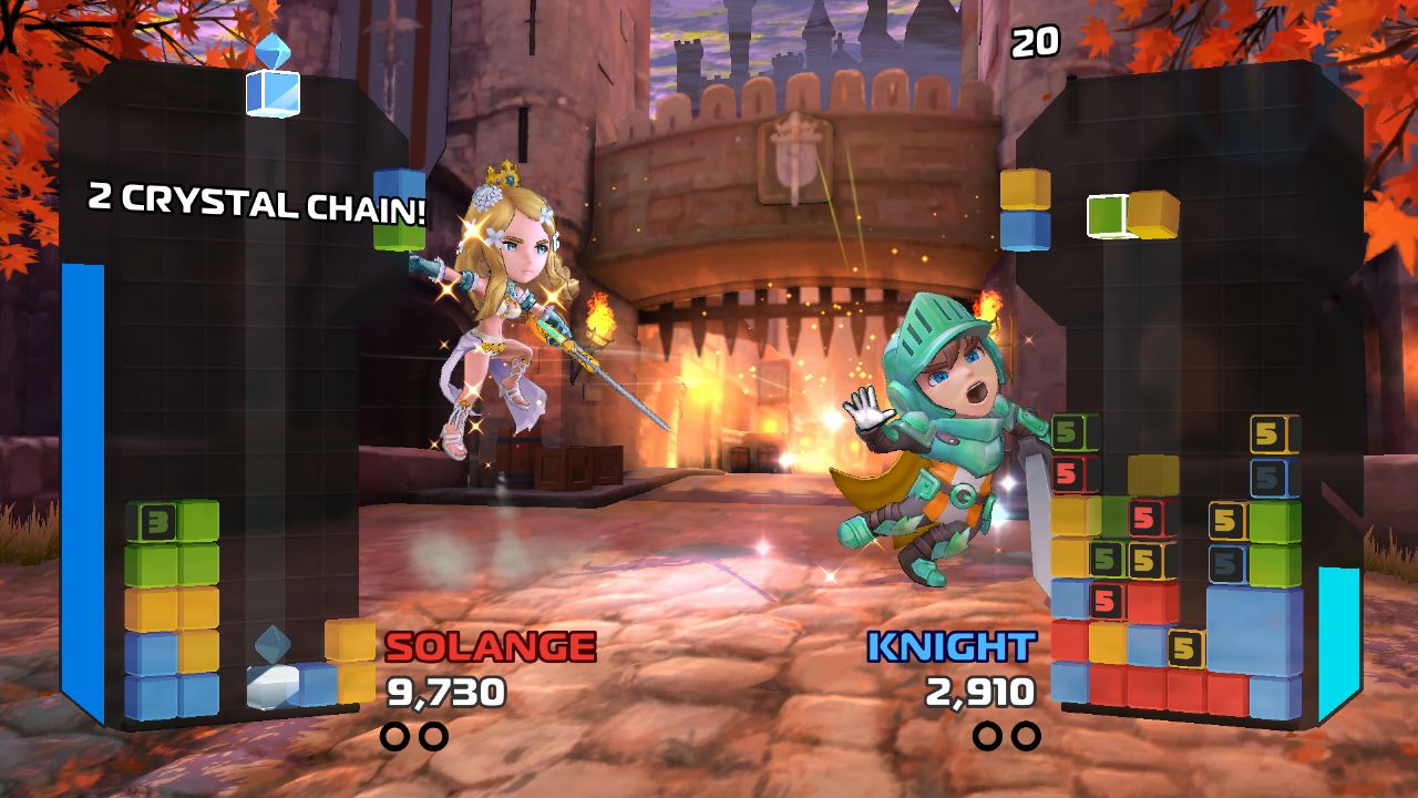 We were also not afraid to break the rules set up by other versus puzzle games. Like, we have a "wrap around" feature that lets you push a falling crystal pair through the side of the playfield to reappear on the opposite side—so you're never trapped by a wall, which is super important during high-level play. You can even split the pair, so one crystal falls at the edge of the grid on the left while the other falls on the right. It opened up a whole new layer of strategy. The team never felt pressured to add features like this just for the sake of being different—I mean, we like a lot of those existing puzzle games just the way they are! It was more about us doing things that we thought would be cool and would enhance what we were creating.