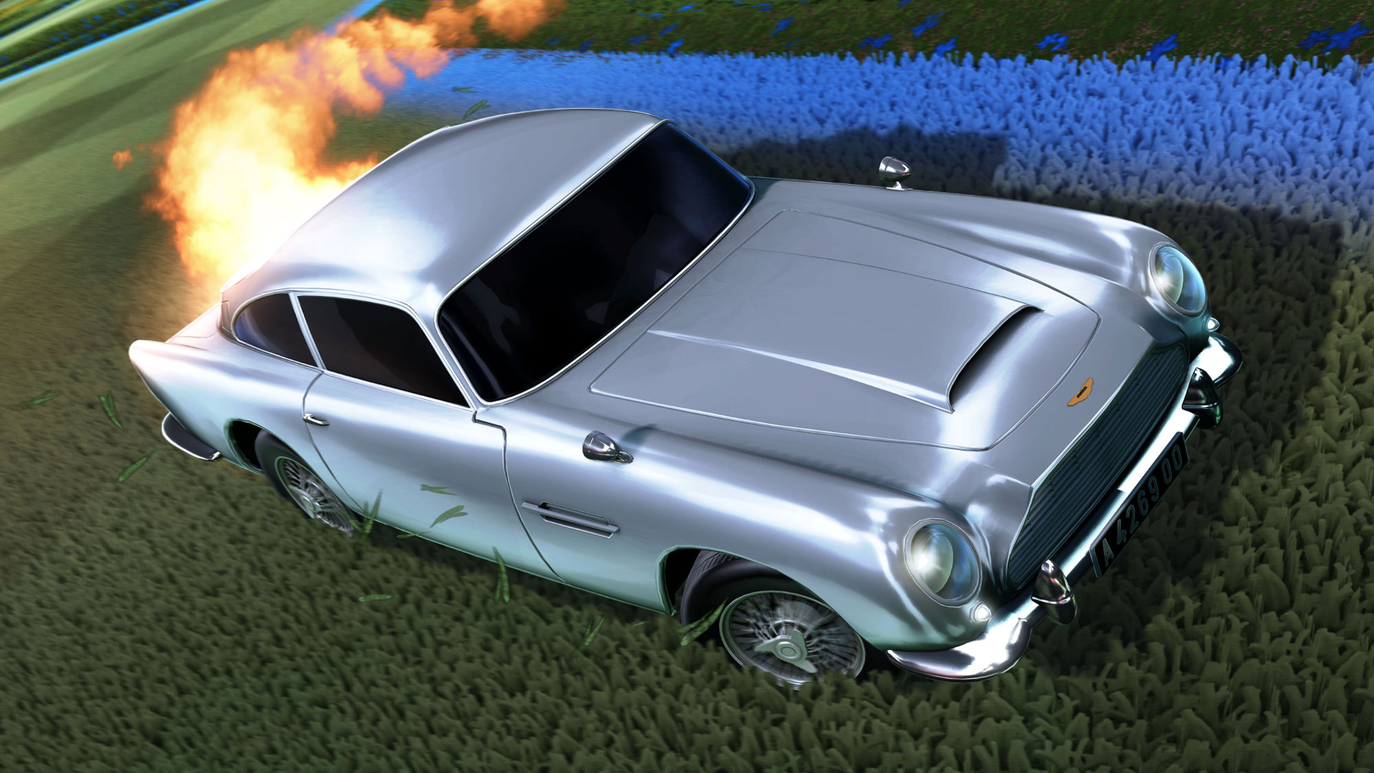 Get ready to jump into the driver's seat of the iconic car driven by James Bond himself! The Rocket League pitch will be shaken, maybe even stirred, by the arrival of the famous 1963 Aston Martin DB5 on July 29th. Q has been hard at work in the lab developing the perfect vehicle for Soccar. The Aston Martin DB5 has been outfitted with rocket boost and an Octane hitbox, and is now ready to go airborne and score goals. 007's Aston Martin DB5 comes with the signature Silver Birch Paint Finish that resembles the original color of the Aston Martin, one-of-a-kind Engine Audio, 007's Aston Martin DB5 Wheels, and a Reel Life Decal. Get 007's Aston Martin DB5 in the Item Shop for 1100 Credits for a limited time before it's gone. Bond will declassify more of his garage later this year, so stay tuned for more mission briefings!