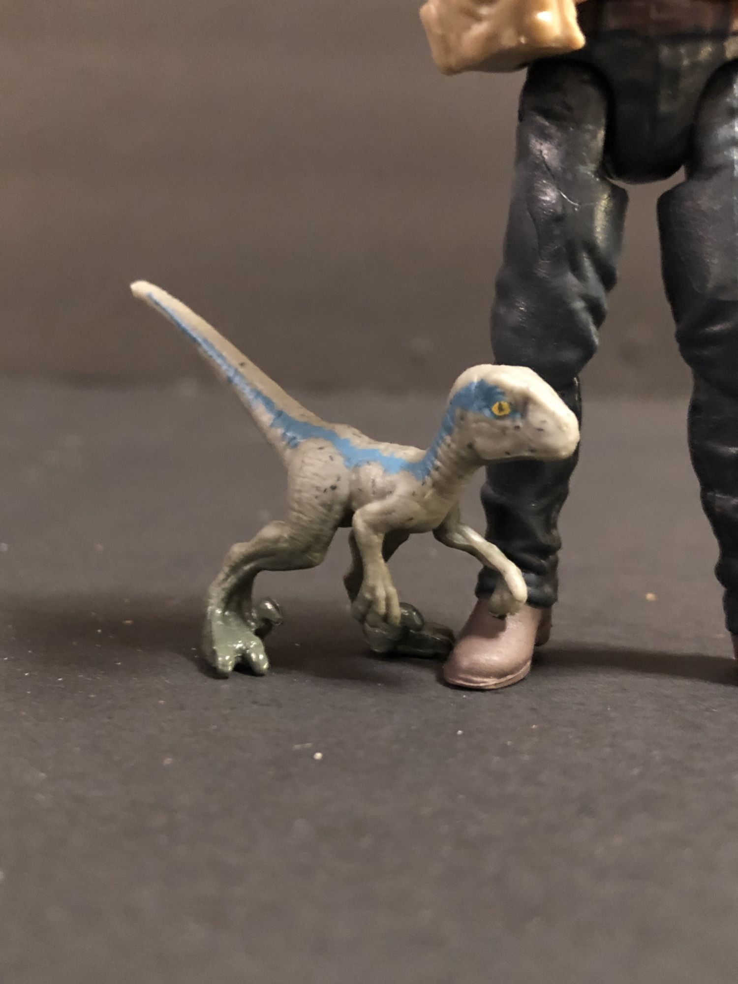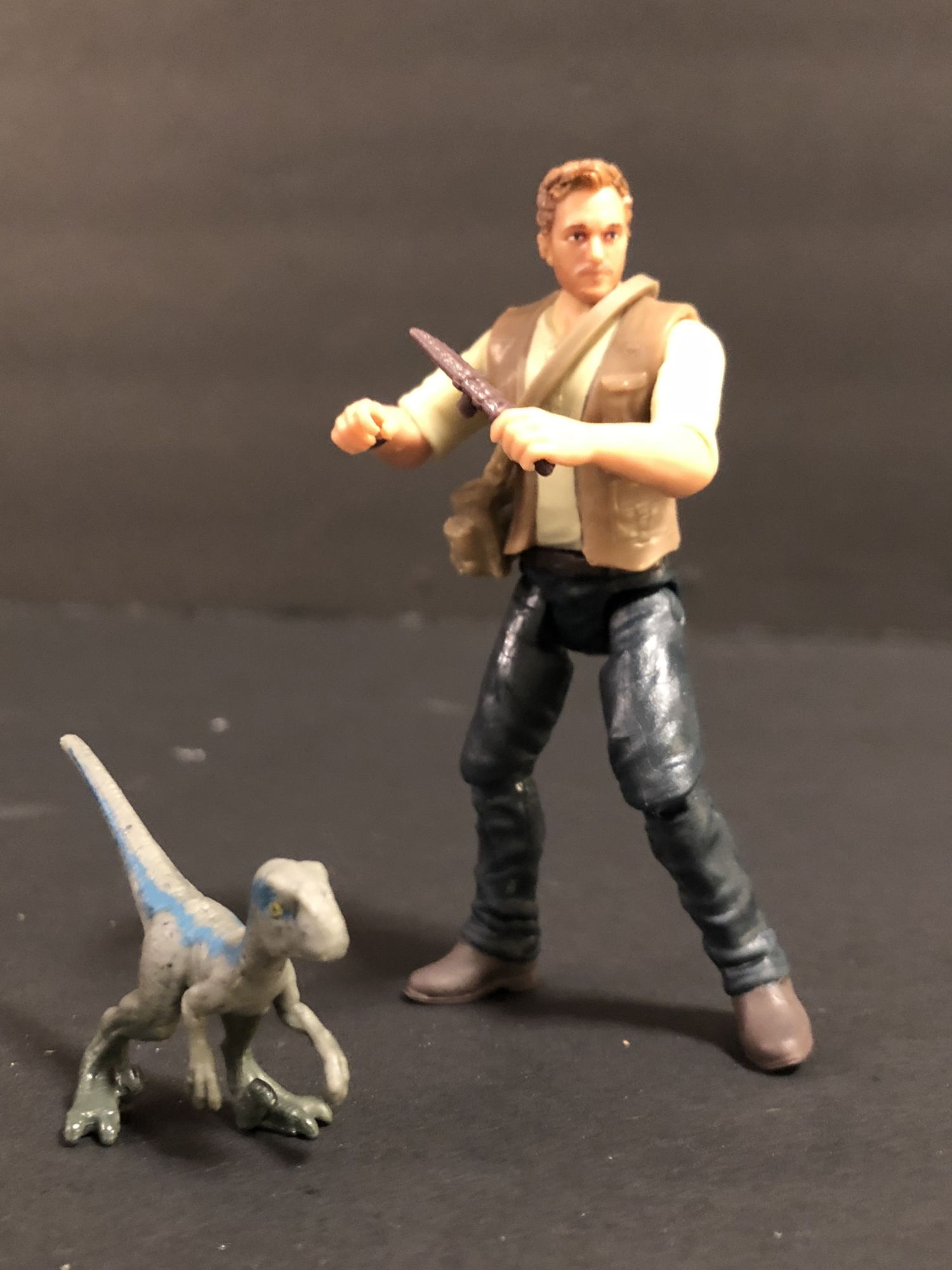 The same goes for the Jurassic World basic figures. The Owen I picked up came with his shoulder bag, knife, and an adorable Baby Blue. The details on Blue are fantastic. Just like the Legacy figures, Owen is easy to pose, and I love that his knife attaches to his waist and stays there. While posing and other things it never fell off. The bag could sit a little lower, but it's okay. Again — for $7.99 it is well worth the purchase.
