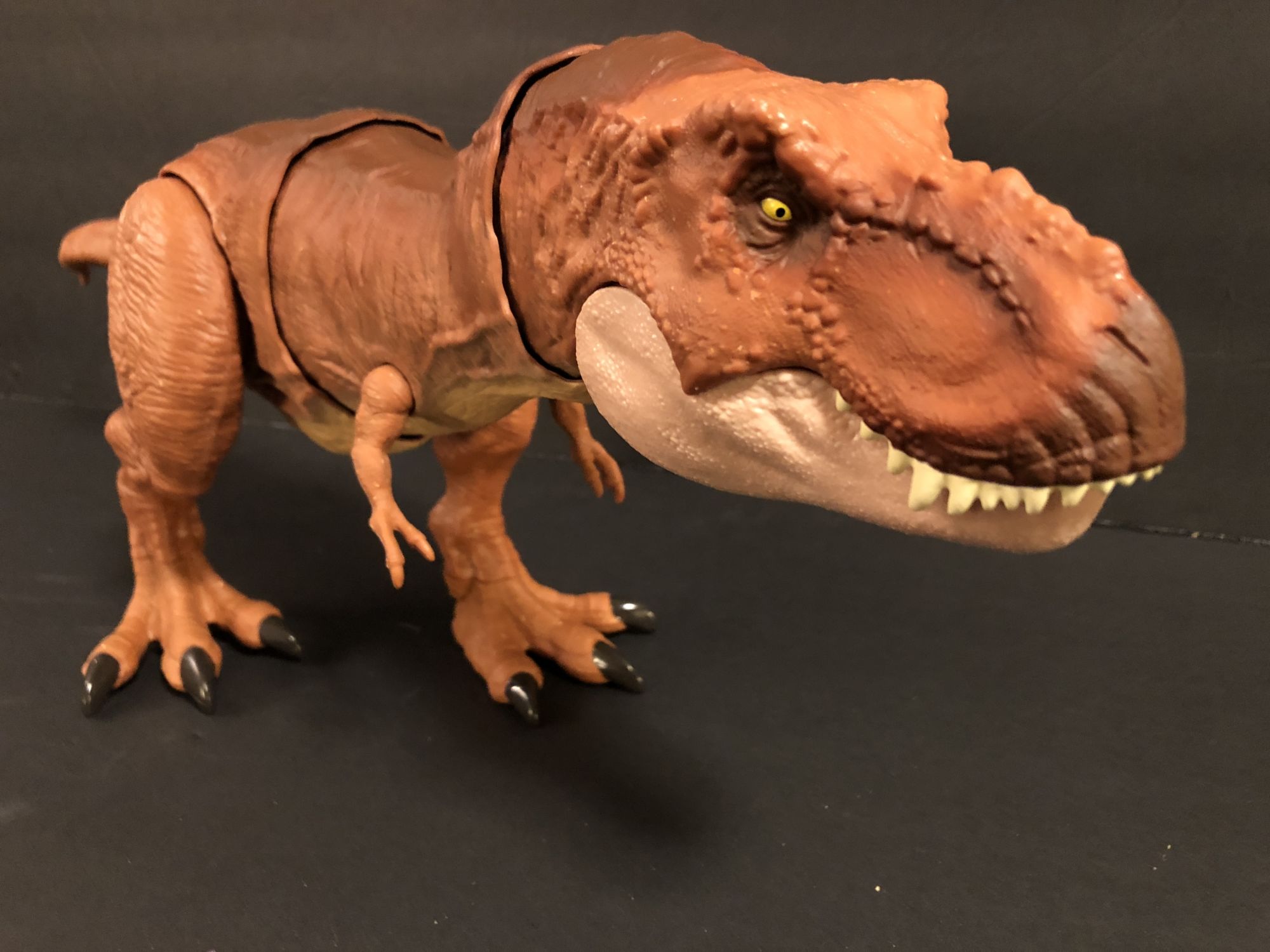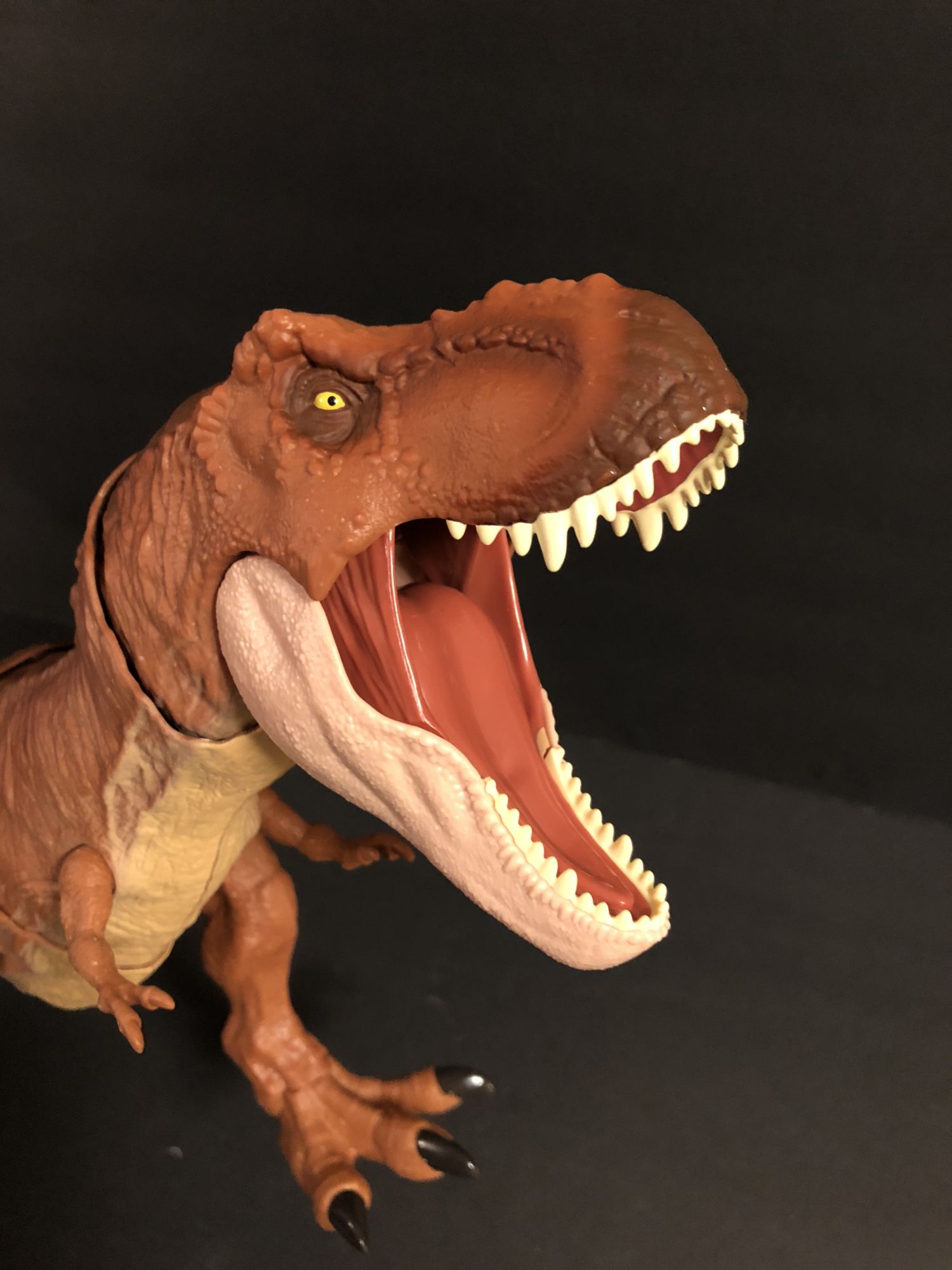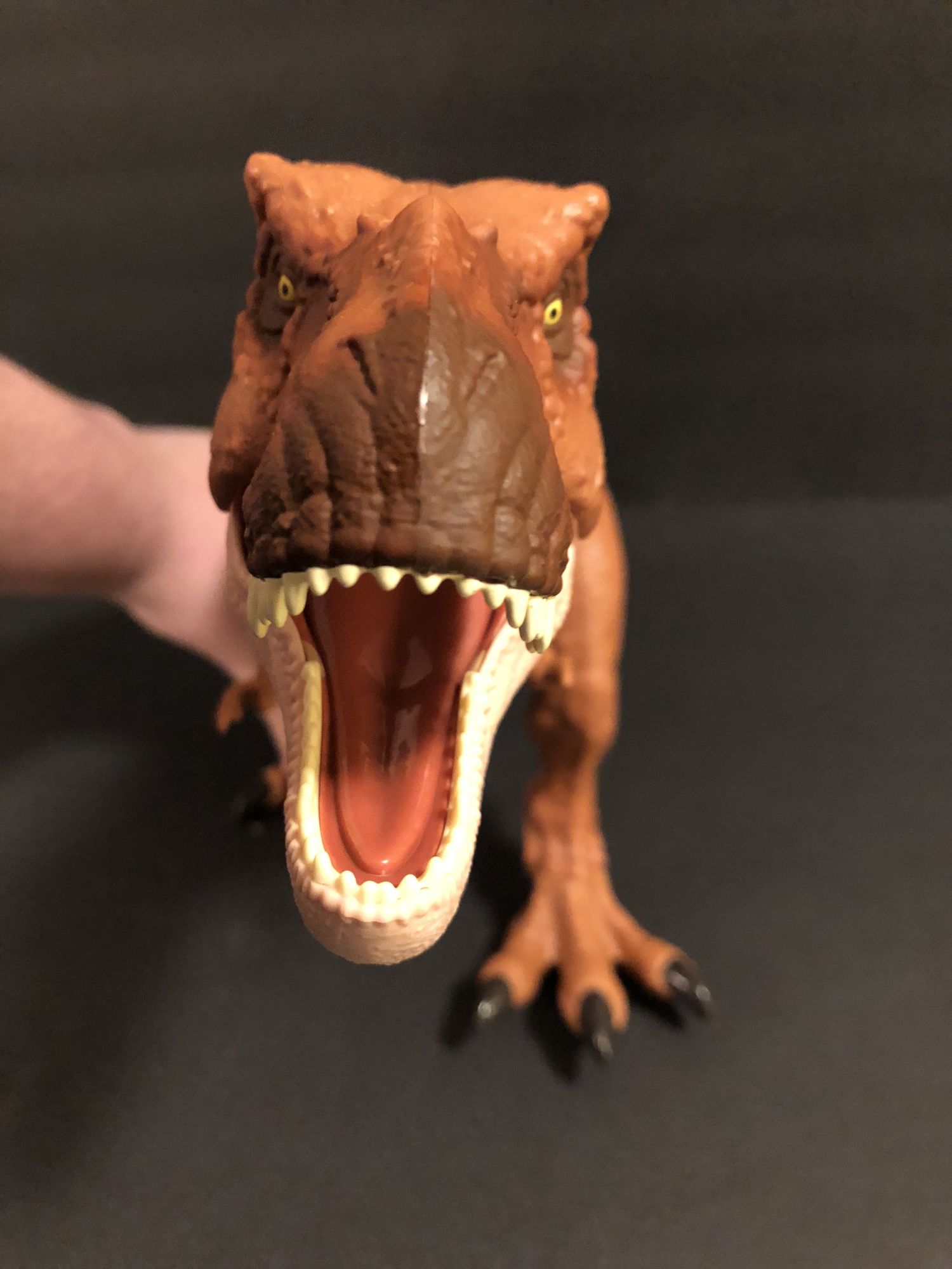 First up is the Thrash 'n Throw T-Rex! The figure features six points of articulation, makes stomping nosies when you press the foot down and the button is pushed in, and when lurched forward by the tail opens her great jaws and lets out a fierce roar. turning the tail thrashes the head back and forth. The sculpt is pretty spot on, although the paint aps feel a little light. Overall though, if you cannot find the 3 foot long Colossal T-Rex, this one will suffice.