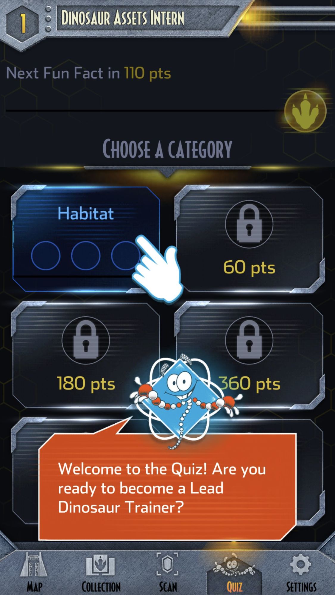Notice that symbol on her foot? That is tied to an app available now in the various app stores called Jurassic World Facts. It is a Pokemon Go!-type app where you answer trivia about various dinos and you collect the facts about dinos you unlock by earning points or buying them in stores and scanning their symbols. Its pretty neat, and free!