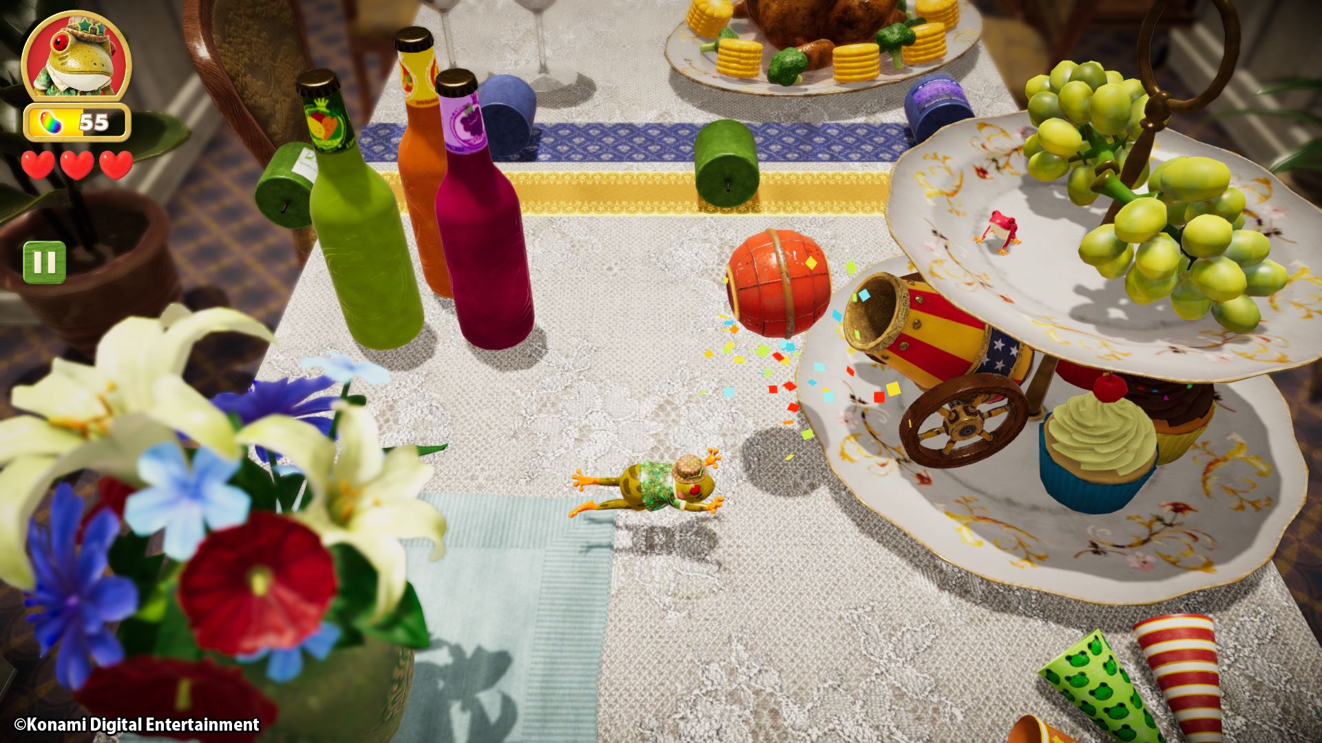 Konami revealed this past week that they have released a fresh update into their mobile app game Frogger In Toy Town. The game actually celebrated it's one year anniversary and has been touting itself as one of the bigger titles you can get on Apple Arcade these days. Now the developers are celebrating the first anniversary by adding eight new stages as well as numerous new costumes and collection items. The new update is being called the "Party Cruise" and is themed around a festival with a showboat and harbor bustling with attractions for you to visit as everyone's favorite froggy game icon. Players will be able to unlock festival-themed costumes that you can wear while rescuing froglets on the Water Lily. The update is free to download to the game as we speak, which you can see some extra screenshots of the action below.
