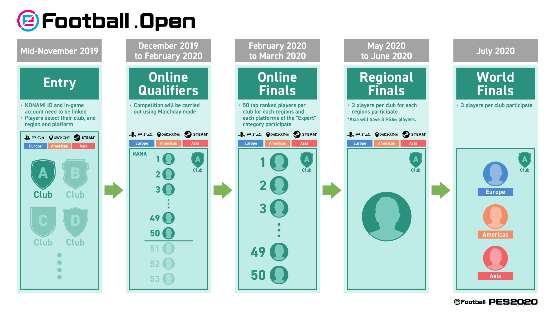 This week, Konami dropped a ton of info about how they intend to run the PES 2020 eFootball.Open, including how they will structure the season. We now know that the competition will be headlined by two major tournaments: the eFootball.Pro and eFootball.Open. The league will kick-off this December, with player registrations for eFootball.Open set to begin in November. What's more, we have a roadmap of how the league will go until July 2020 for you here.