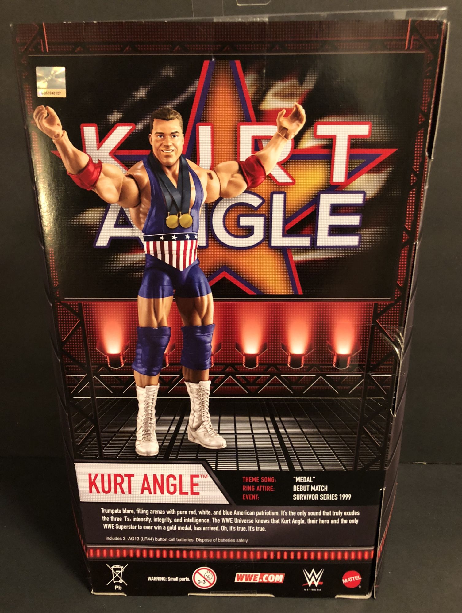 Kurt Angle, WWE Hall of Fame member and multiple-time champion, is the inaugural figure in the return of the Entrance Greats line from Mattel. Popular when Mattel first got the WWE license back in 2010, they released eight figures in the line before stopping that same year. The main hook was that the figures would feature superstars in their… well, entrance gear, and a stand that would play some of their theme music. I always liked these (although I am still missing the Million Dollar Man from my collection), and was sad that there wasn't any more.