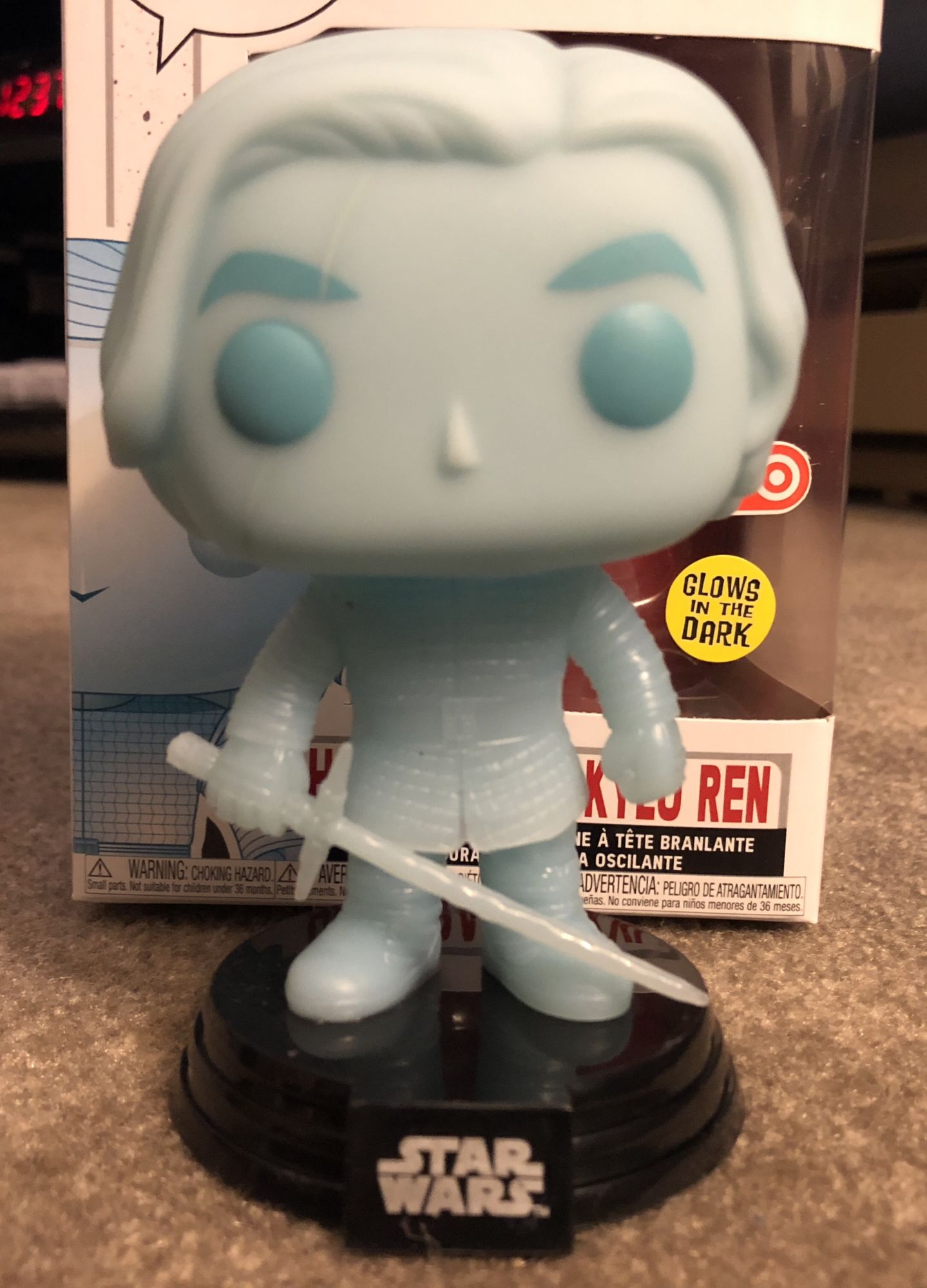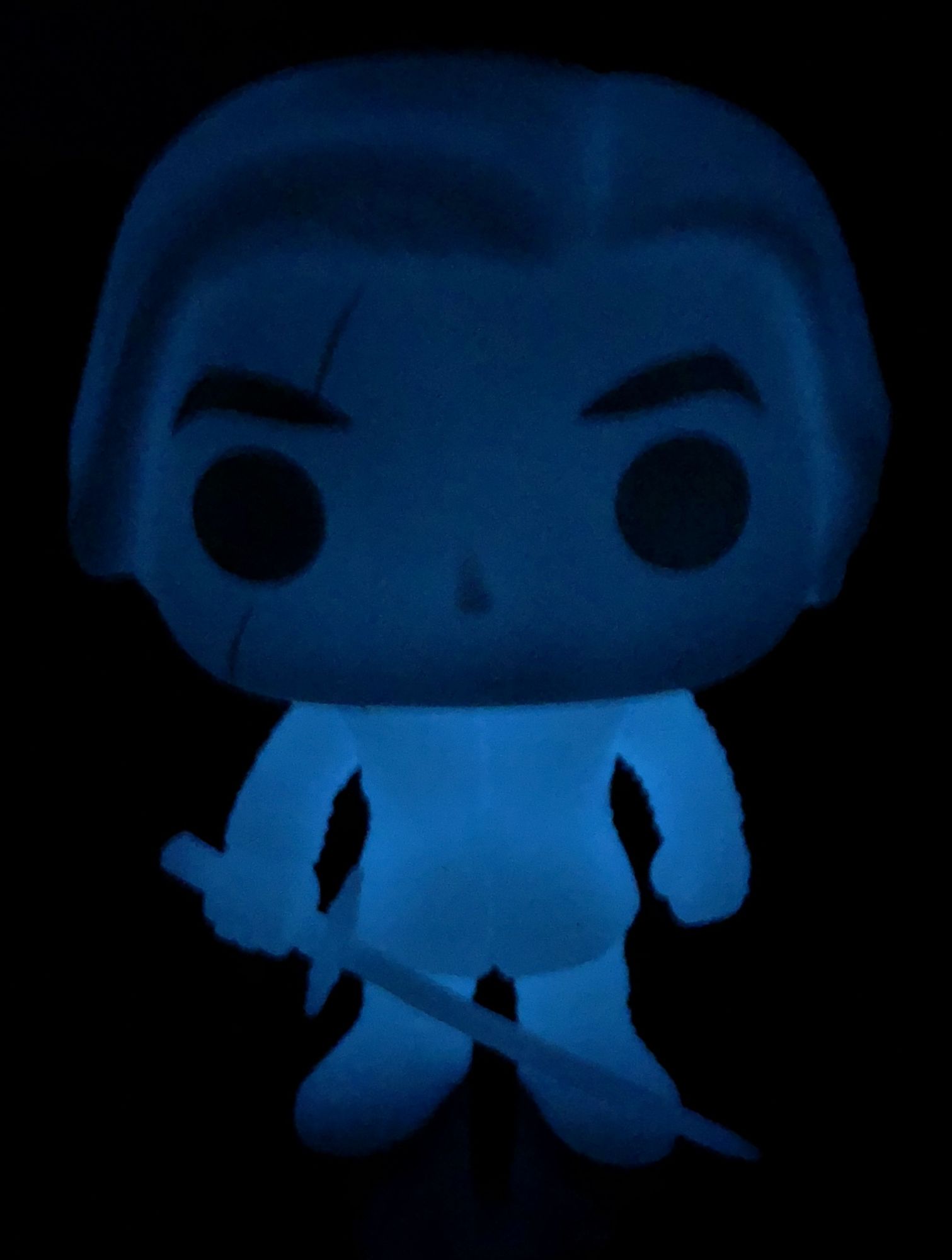 As far as the Pop itself, I love it. While the glow-in-the-dark figures look kind of weird on their own, when you get the glow effect actually going, it looks exceptional. It took about four minutes in front of a lightbulb to get it fully charged and glowing, but I love the way the body lights up the other parts of the bobblehead. His face scar pops (sorry, not sorry) while the figure glows. Just a home run all around.