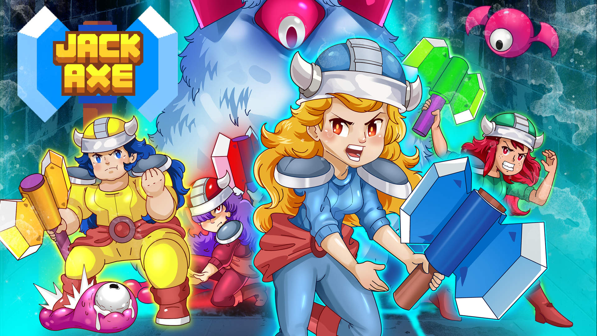 We got a chance to visit the Another Indie booth at PAX East this year, and the first game they showed off to us was Jack Axe. This is a multiplayer platformer where your axe serves as your best friend as you will use it to explore the world and make your way through different challenges. The axe itself acts like an all-in-one tool to rocket yourself across levels, destroy obstacles in your way, creatively defeat foes, and essentially serves as a McGuffin for all your troubles. The game also acts a bit like a die-and-repeat game as you can go as a four-player team and lose people along the way, but they will regenerate if you make it to a new area. However, if you all die, you have to start that section over again.