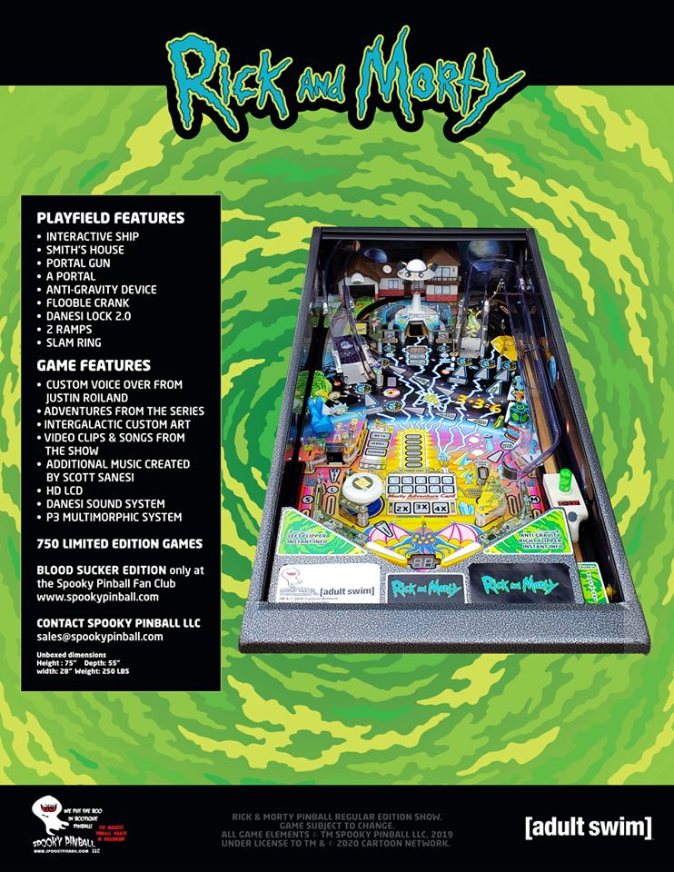 At long last Rick and Morty has a pinball machine. Spooky Pinball's newest creation has certainly caused a stir in the pinball world. So much so, that the machine sold out within a few hours of pre-sales going live. This was a first for Spooky — and likely in pinball history. The pin comes in two versions: Limited Edition (limited to 750), and the Blood Sucker edition.
