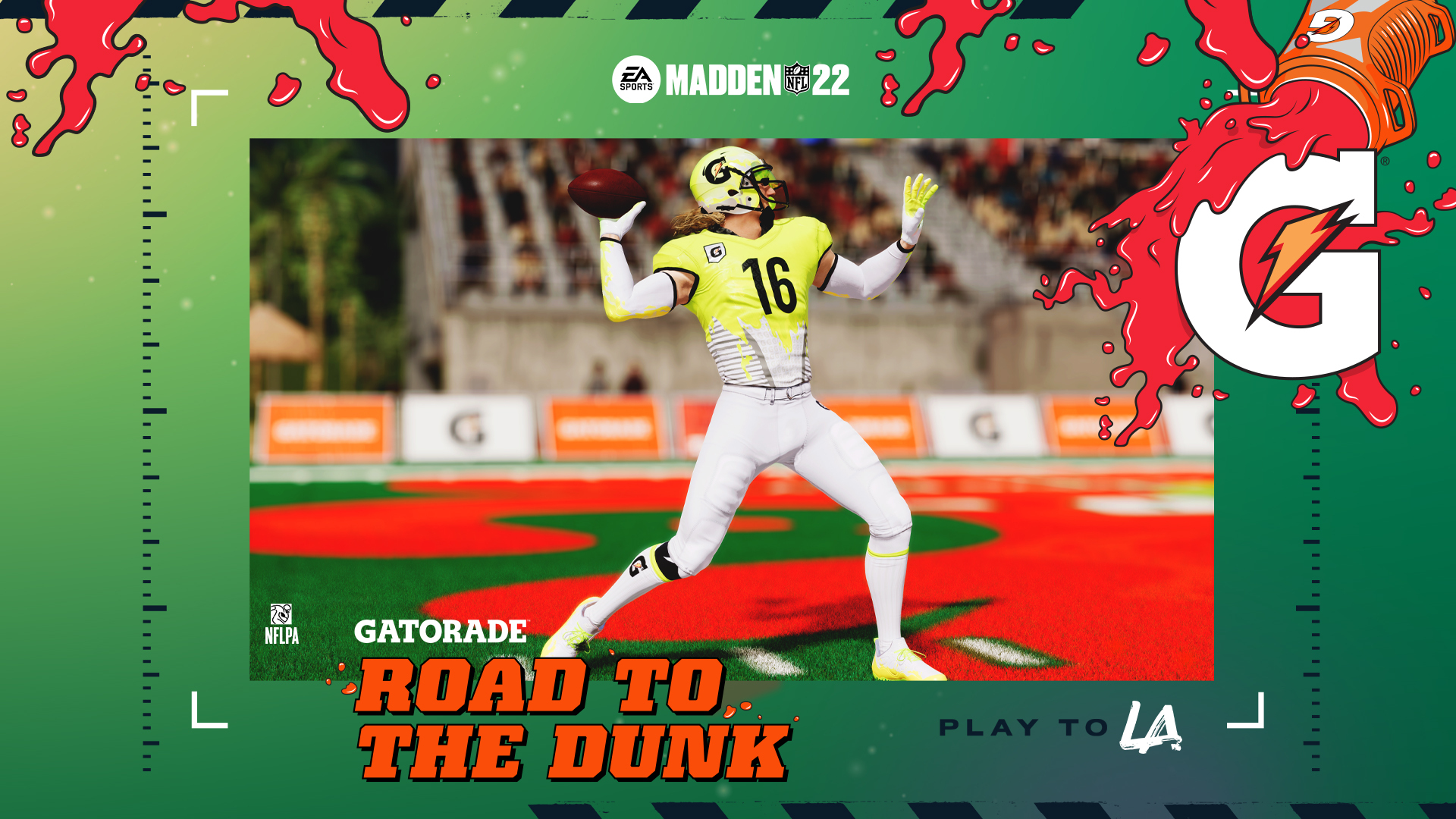 Two of the most storied brands in sports – EA Sports and Gatorade – are teaming up to bring an immersive Gatorade experience to The Yard in Madden NFL 22. The Gatorade experience will be available in Madden NFL 22 from Jan. 14 through Feb. 15. A similar 'Road to the Dunk' experience will also be available for players on Madden NFL Mobile.