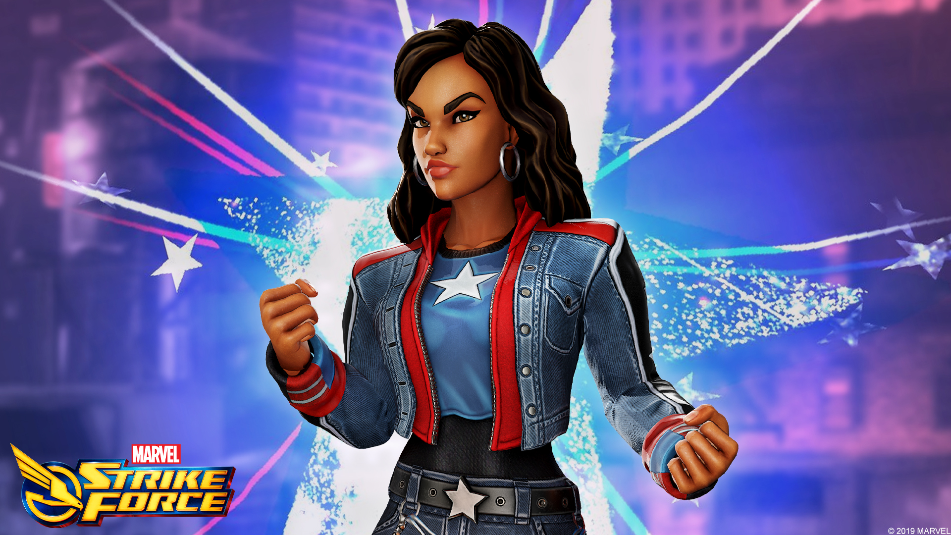 As the Marvel Universe's leading Latin-American LGBTQI advocate, America Chavez's unique powers lie in her superhuman strength, speed, flight and invulnerability. Players can use her special abilities to Synergize with her fellow Brawler heroes and create Star Portals, allowing her to teleport and clobber her enemies with sneak attacks.. With these powers, America Chavez is a superhero Strike Force commanders will be proud to have on their teams.