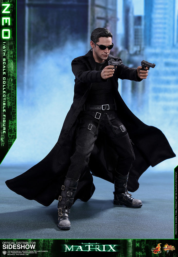 Sideshow and Hot Toys are very excited to present the highly anticipated 1/6th scale Neo collectible figure from the award-winning science fiction film The Matrix. With meticulous and careful craftsmanship, the very stylish sixth scale figure features a newly developed head sculpt highlighting a stunning likeness of Keanu Reeves as Neo in the movie, the signature form-fitting outfit and long coat with sophisticated tailoring, "lots of guns" including assault rifles, various types of submachine guns, and pistols, the iconic sunglasses, and a specially designed dynamic figure stand!